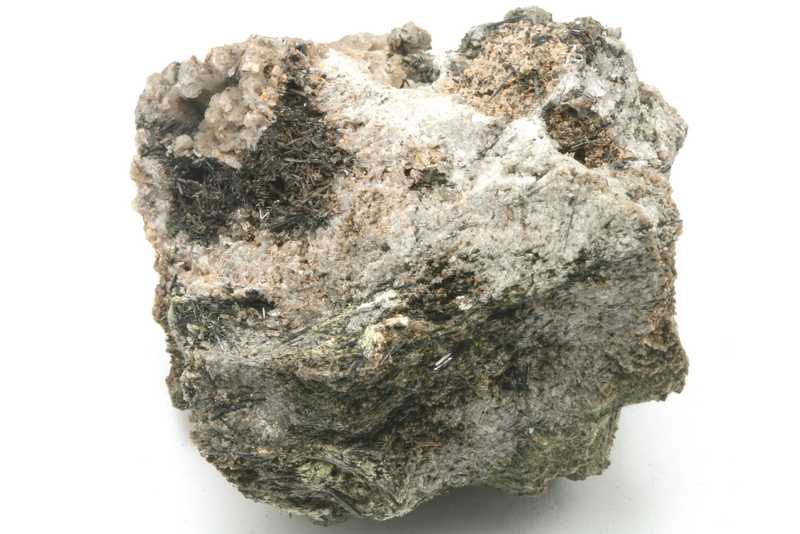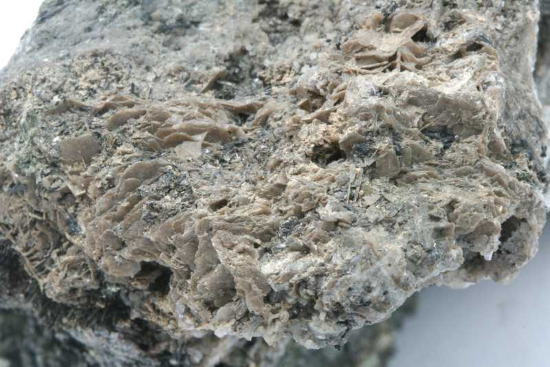 Rare silicate from the Chibiny Mountains. A sample of beige, flaky crystals of the rare mineral katapleite, up to 8 mm in size.