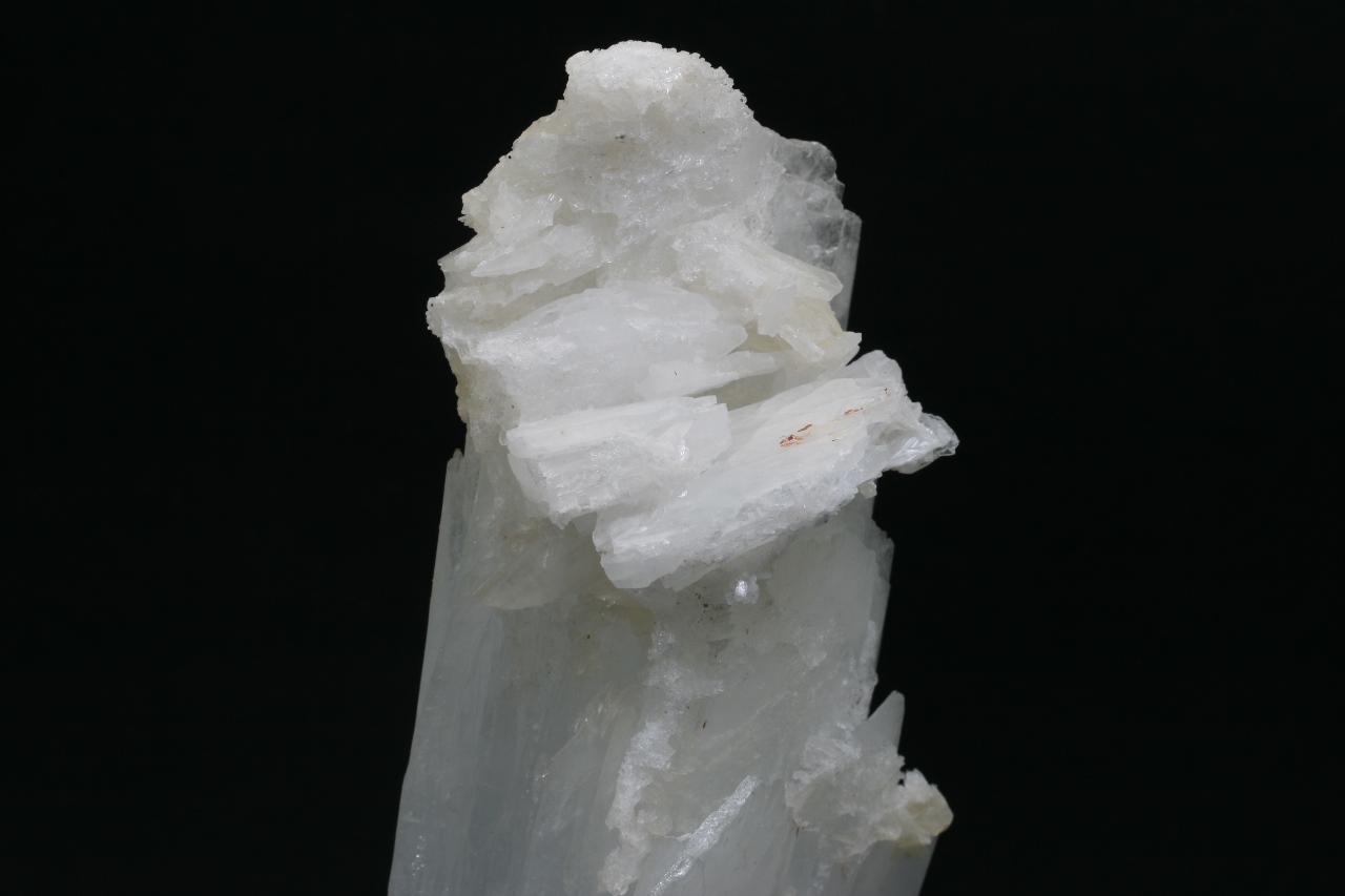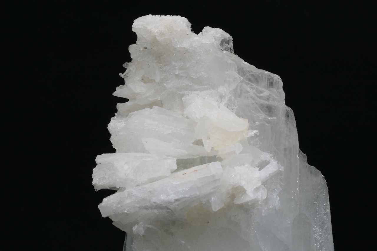 Fan of strongly tabular, white crystals of strontium sulfate.