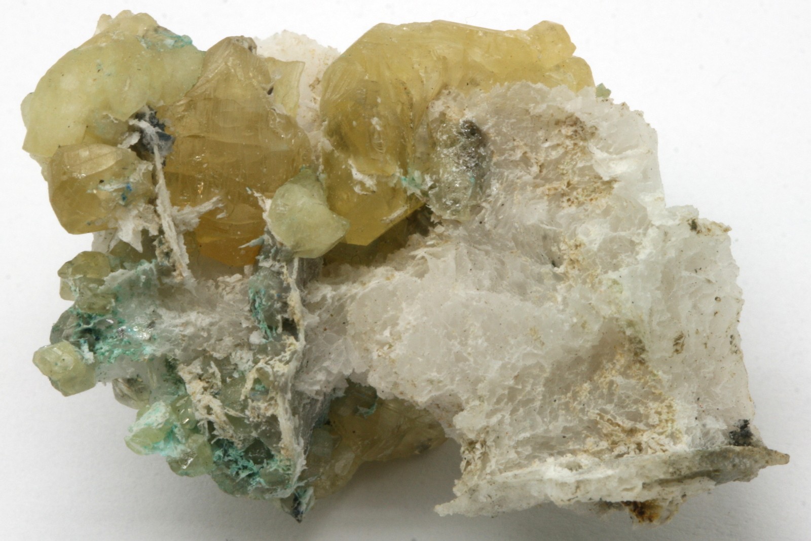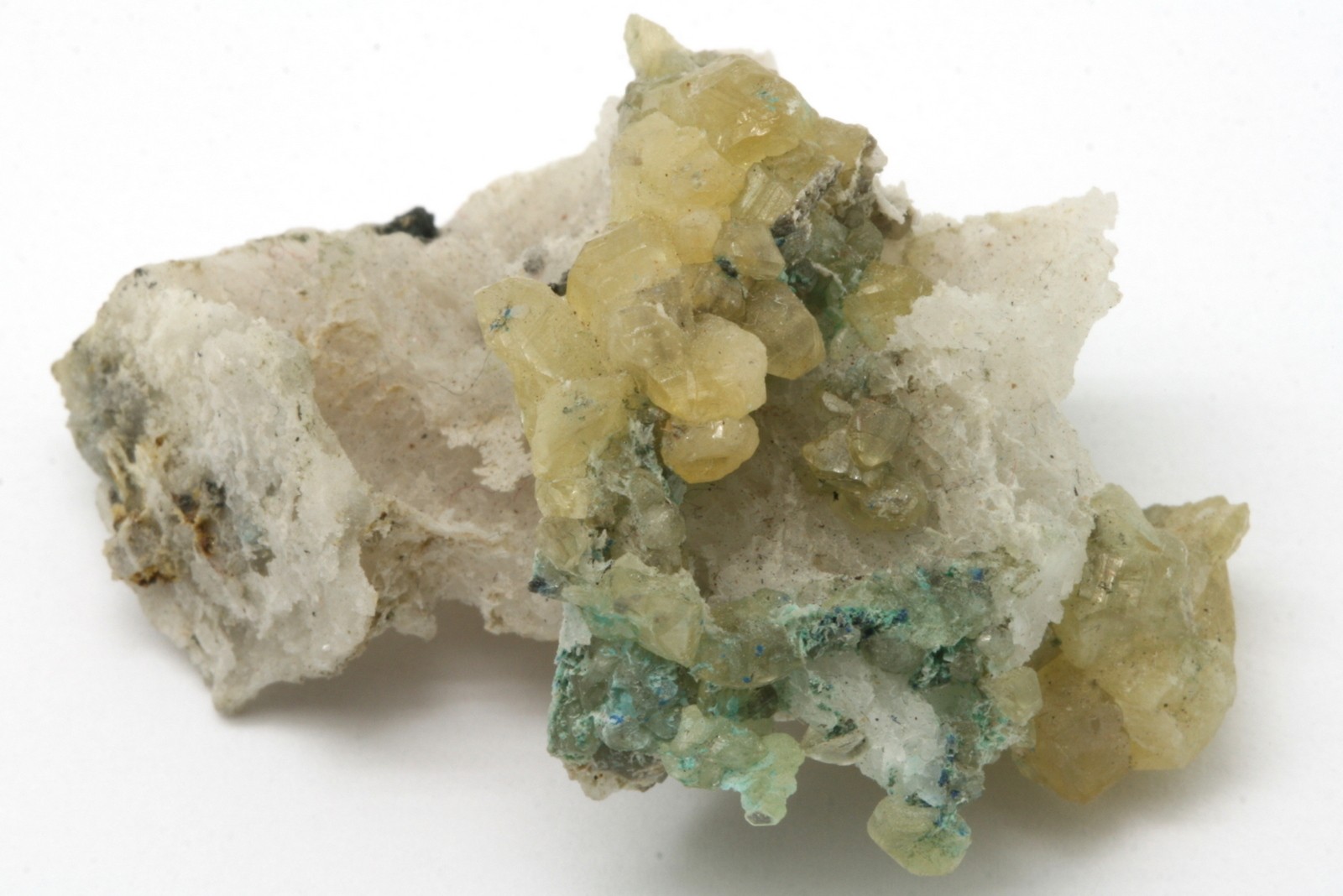 A small specimen with yellowish cerussite crystals up to 13 mm in size.