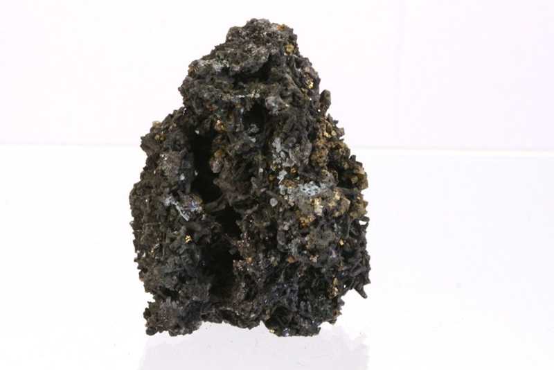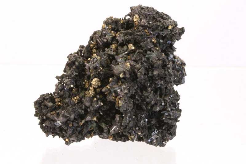 A beautiful specimen of black carbonate of lead with pyrite crystals from Mapimi. Columnar crystals of cerussite up to 10 mm long.