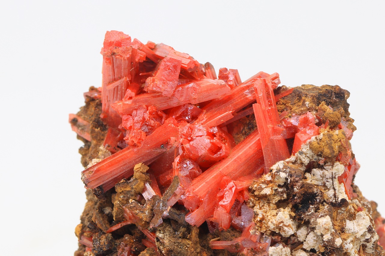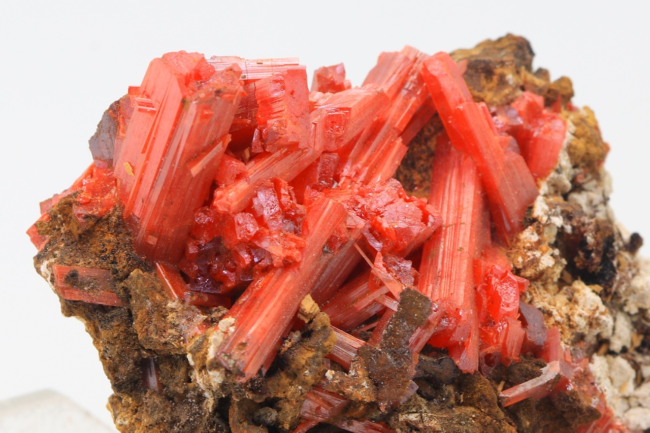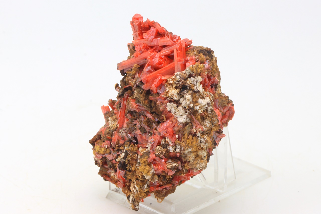 Aesthetic sample of well-defined, orange-red crocoite crystals. The largest crystal is 37 mm in size.