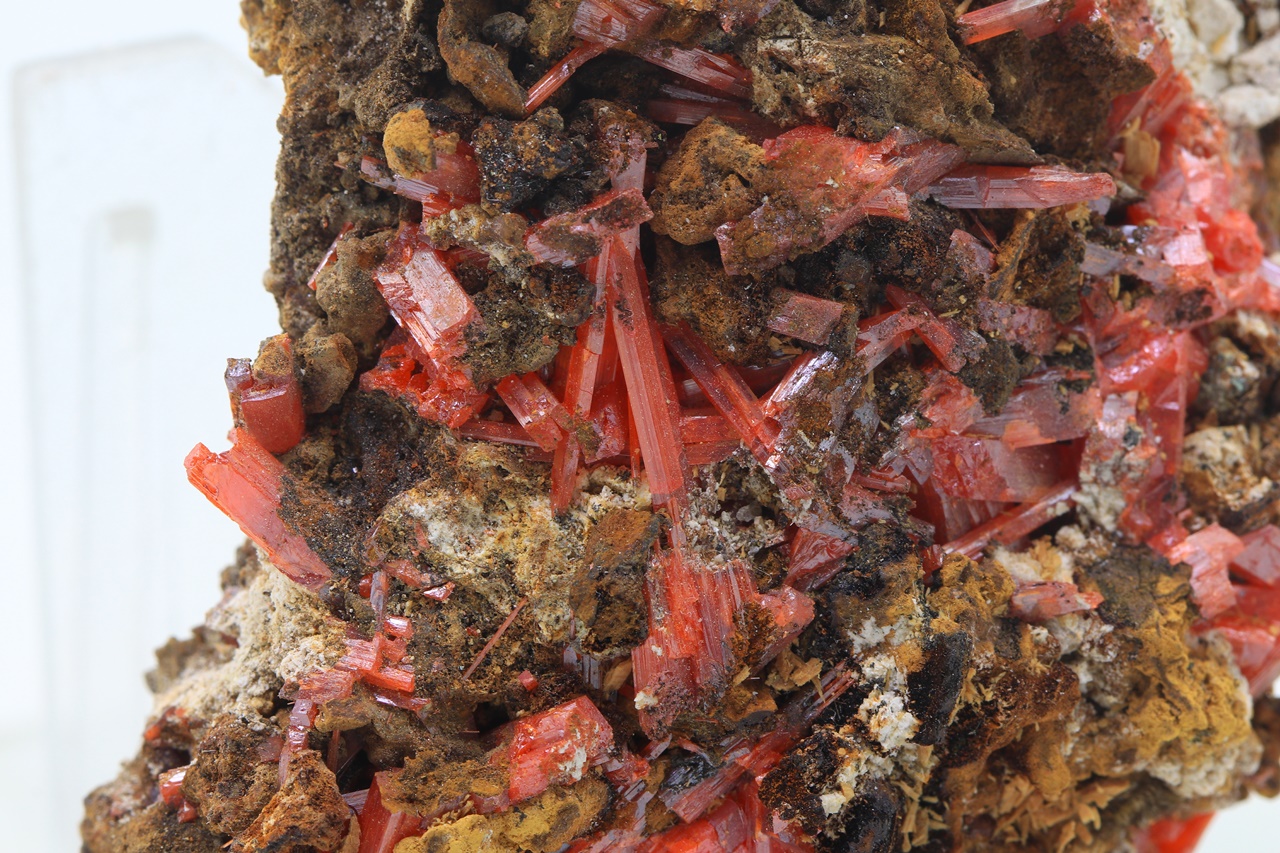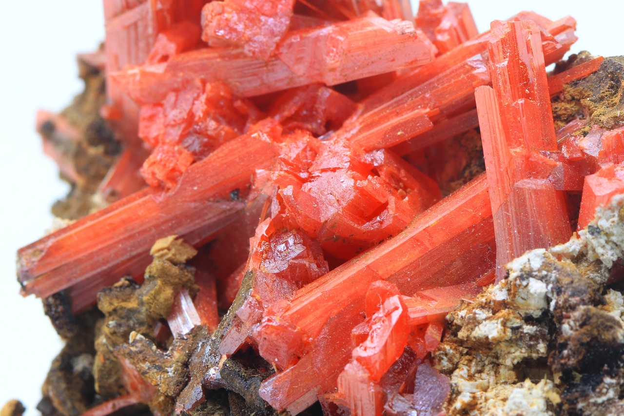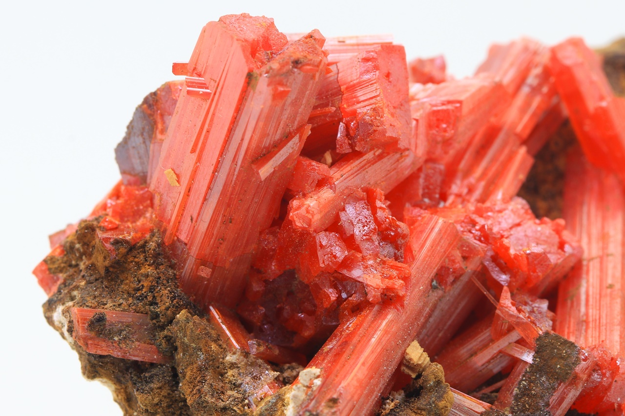 Aesthetic sample of well-defined, orange-red crocoite crystals. The largest crystal is 37 mm in size.