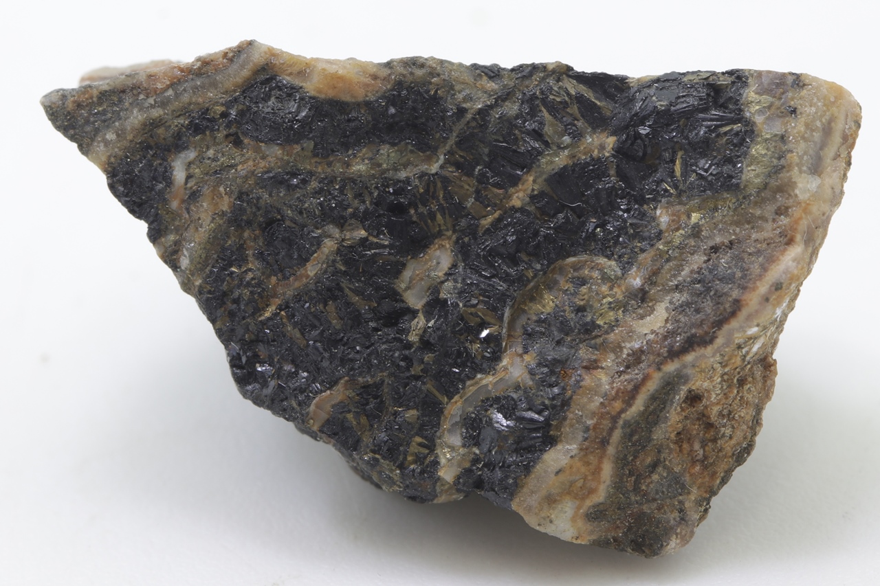 Up to 3 mm thick veins of black iron silicate – cronstedtit. The specimen dates from 1957.