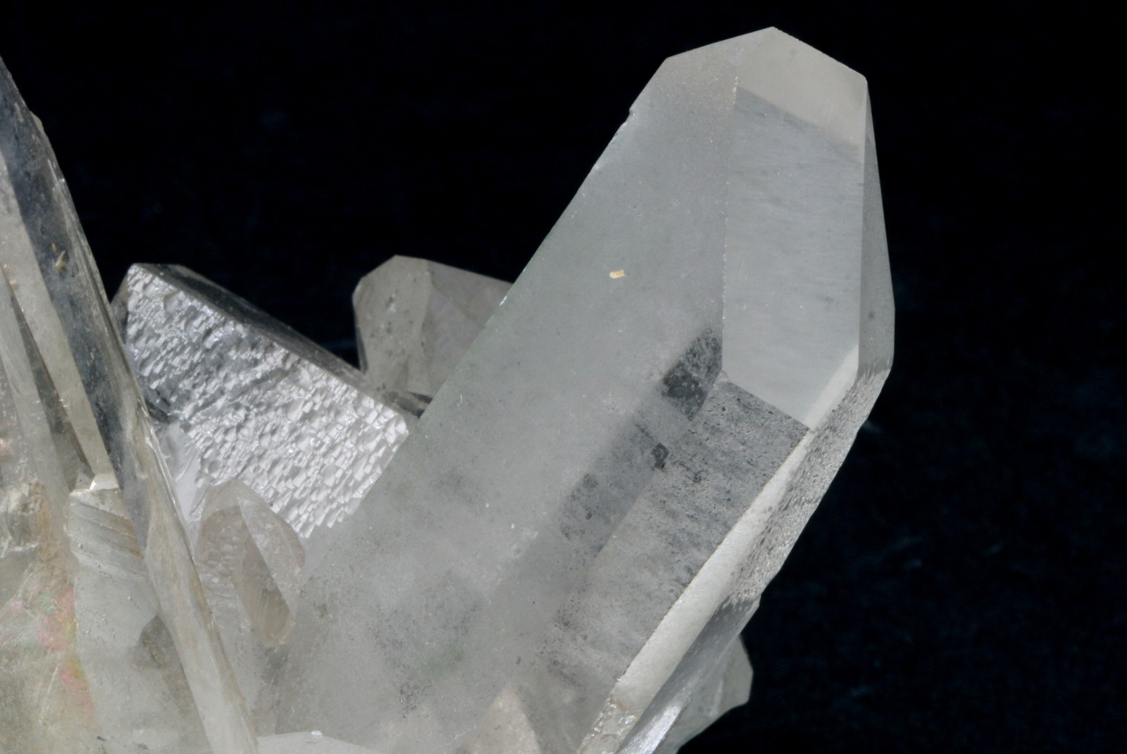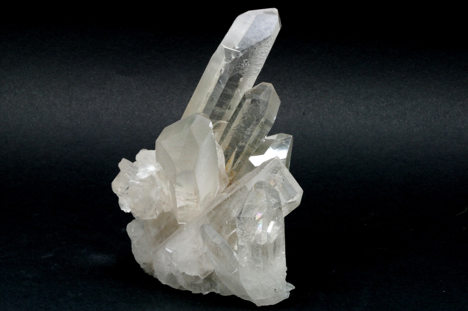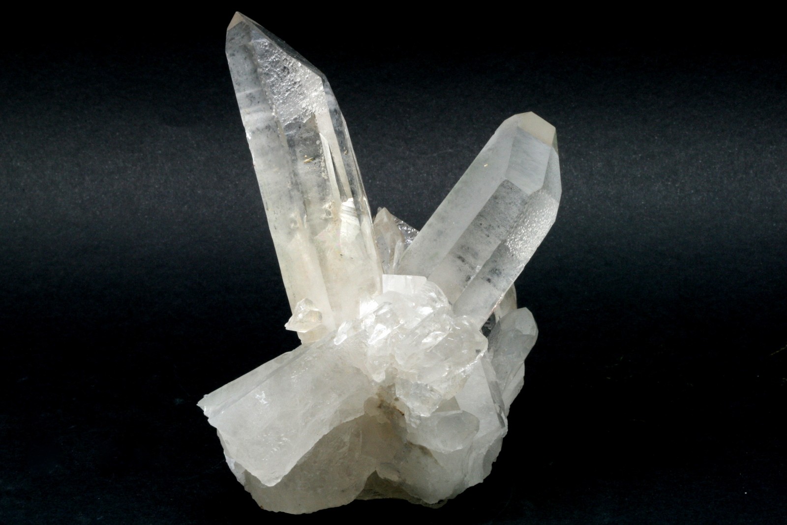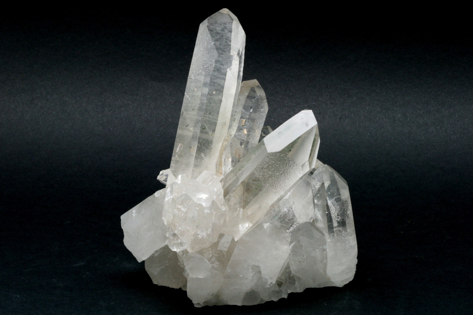 A beautiful specimen of a free cluster of clear, perfectly terminated rock crystal.
