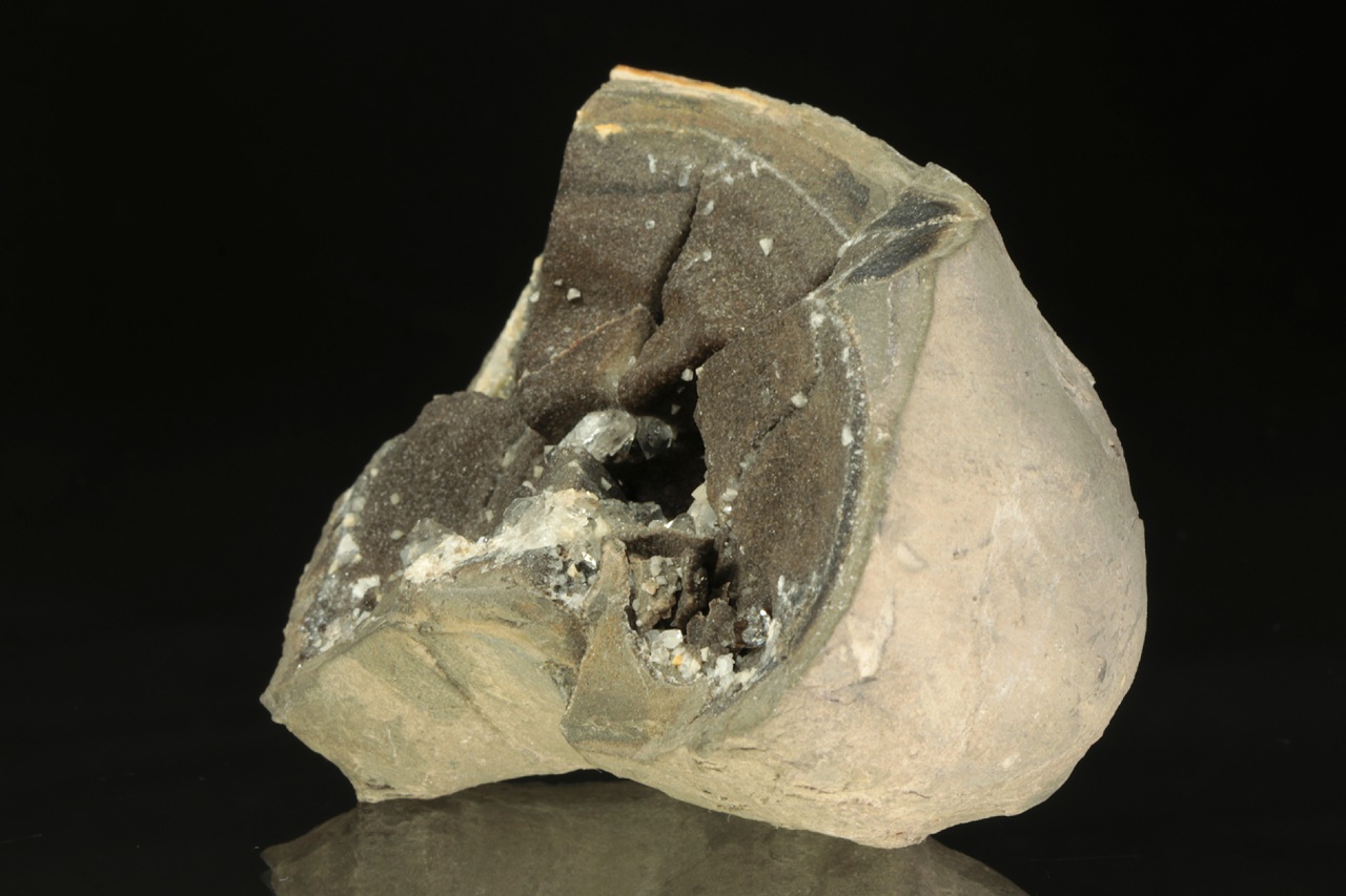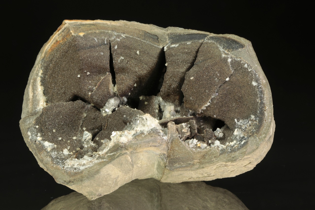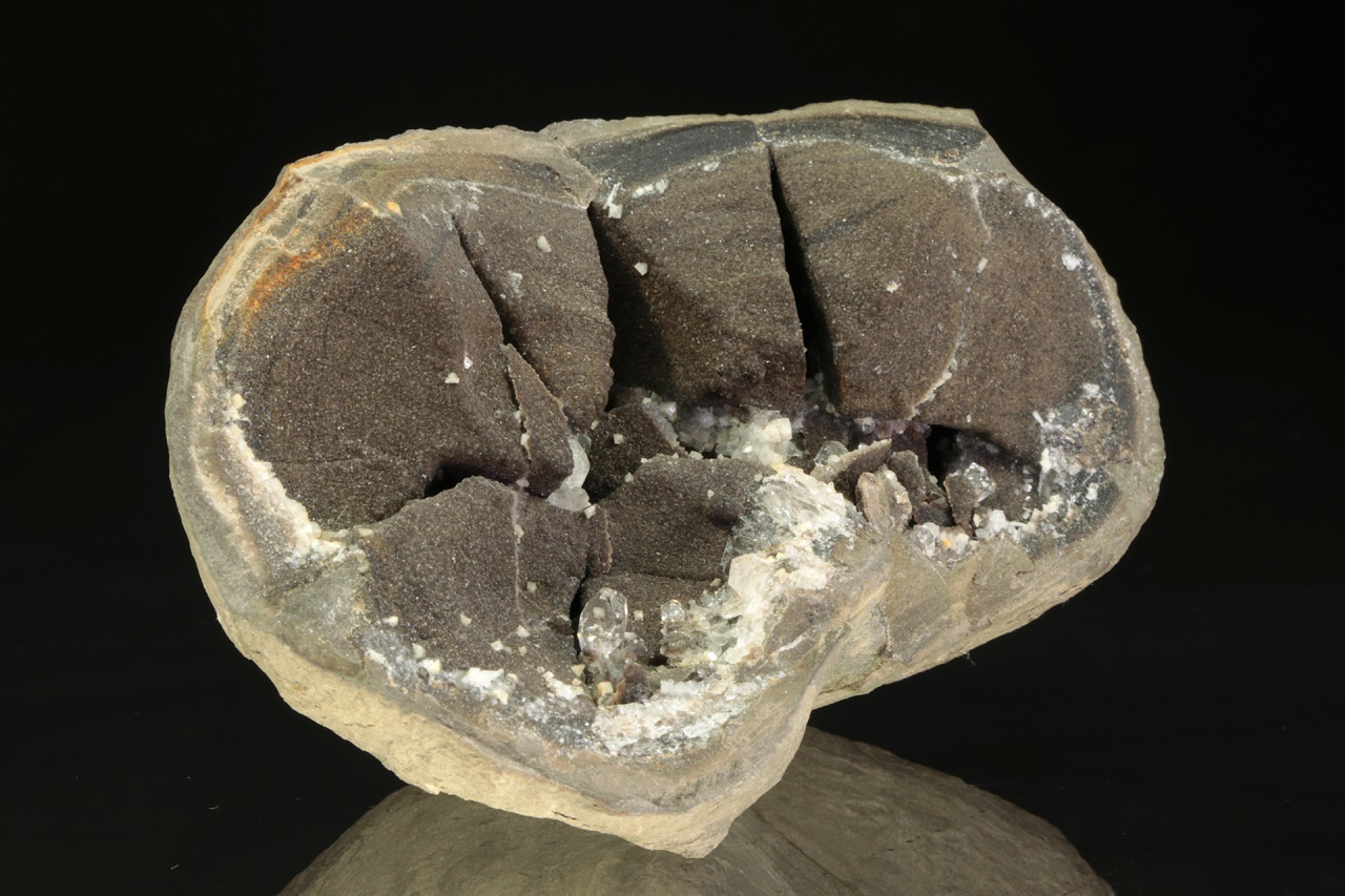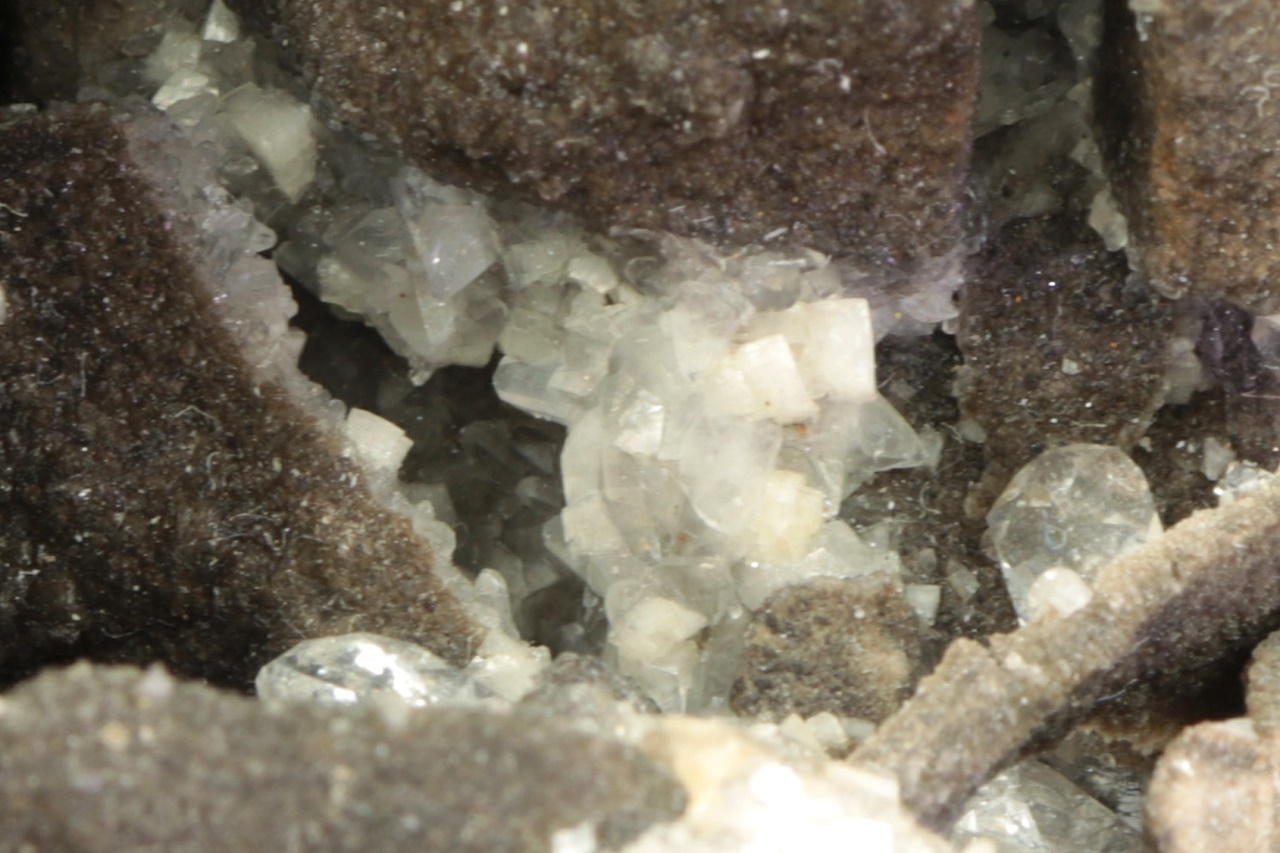Very clean and shiny quartz crystals unusually included in a pelosiderite concretion. Similarly very clean and shiny crystals are sometimes collectively referred to, along with their place of origin, as so-called diamonds (e.g., Herkimer, Maramureș). The size of the largest crystal is 5 mm.
