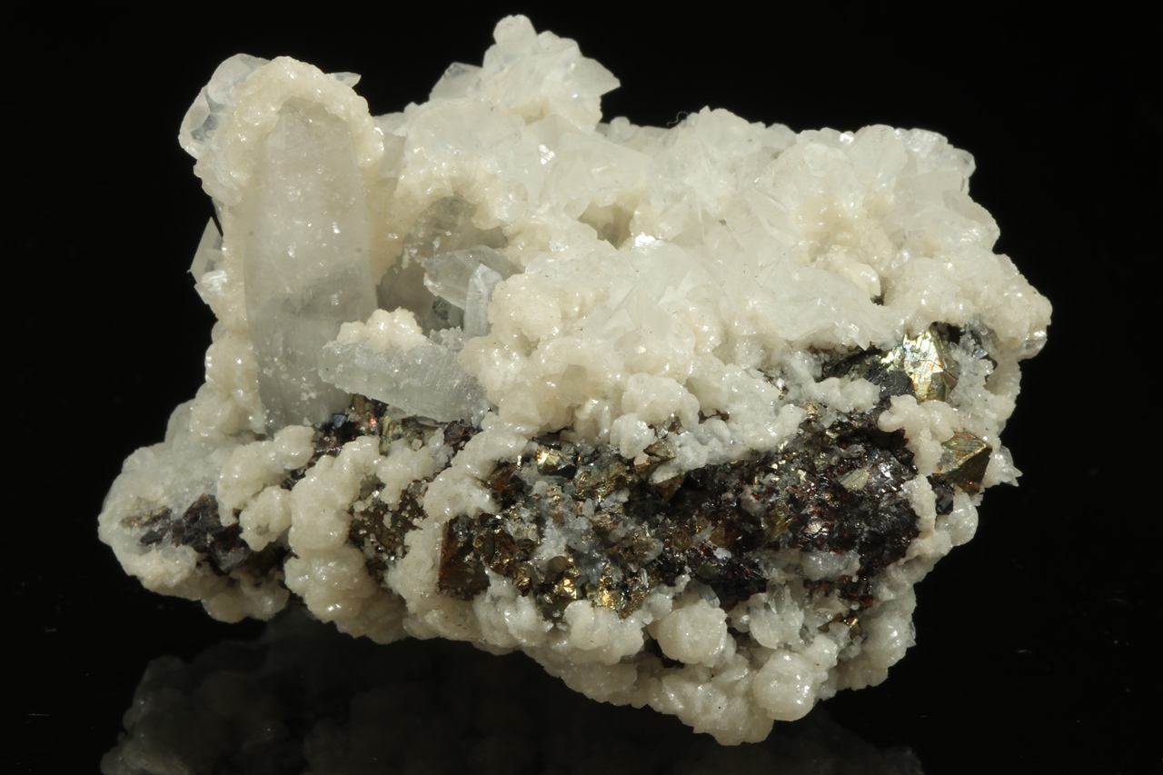 Rock crystal, dolomite, calcite, chalcopyrite