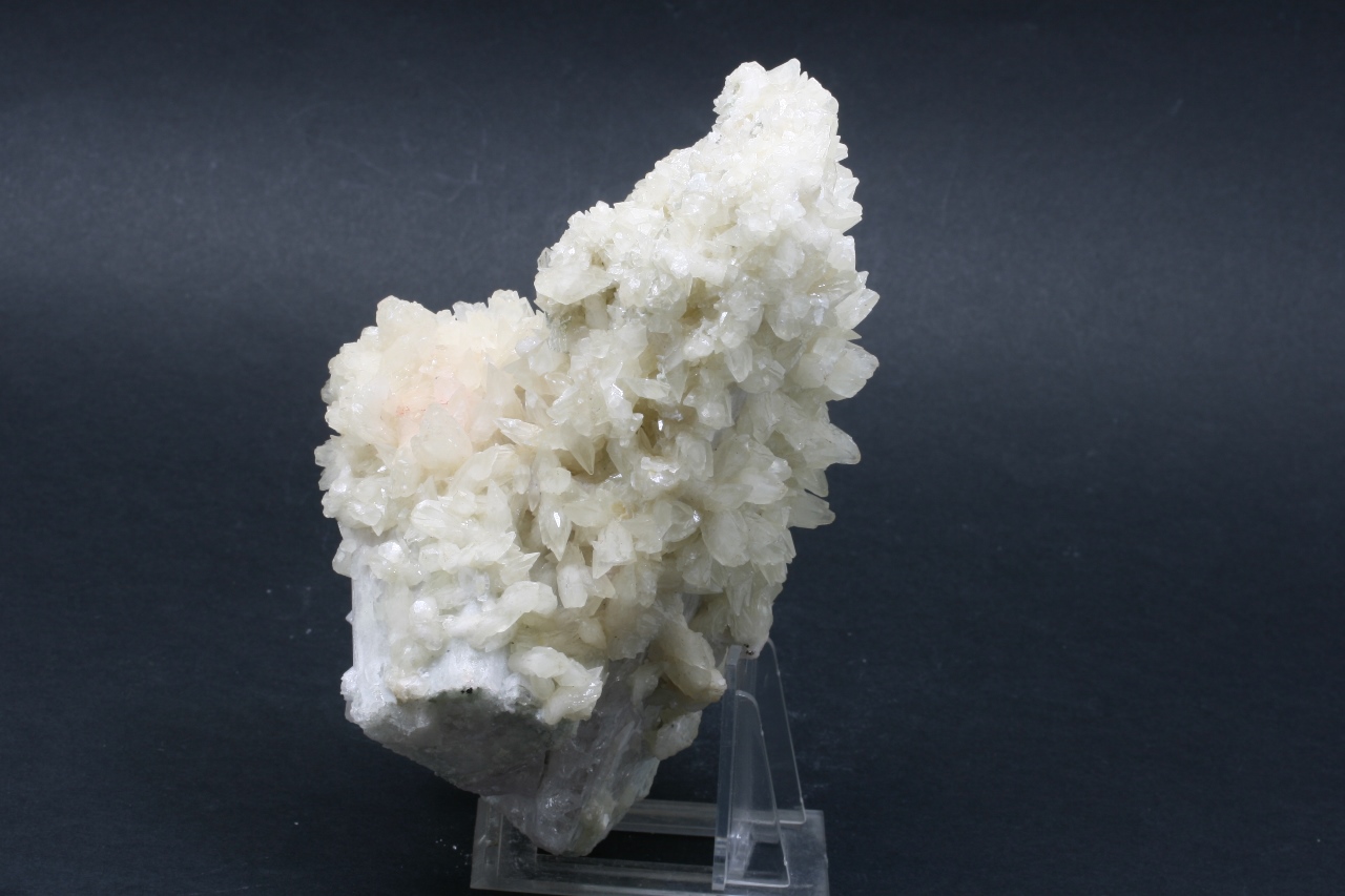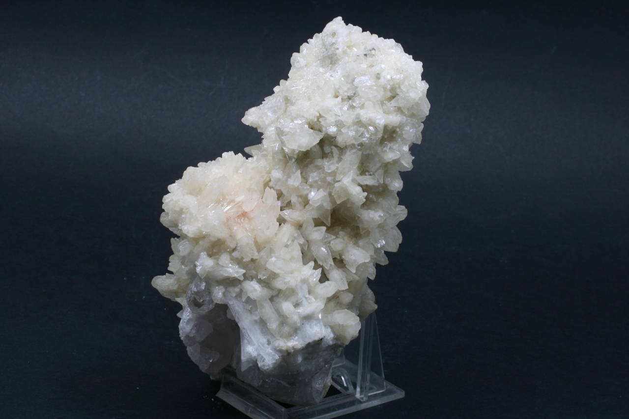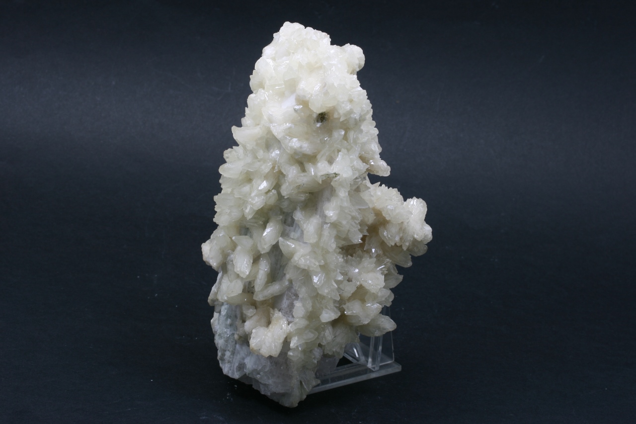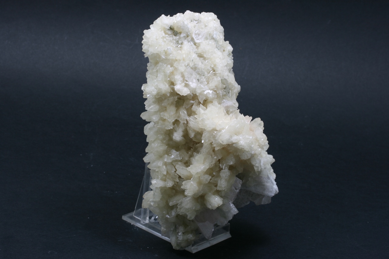 Twinning of two Danburite crystals (the larger one is 15 cm, the smaller one is 9 cm) covered with white Calcite crystals.