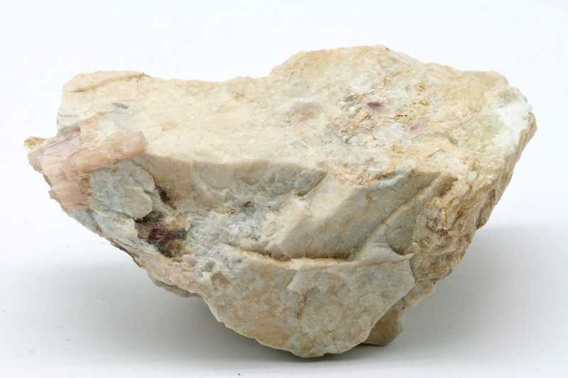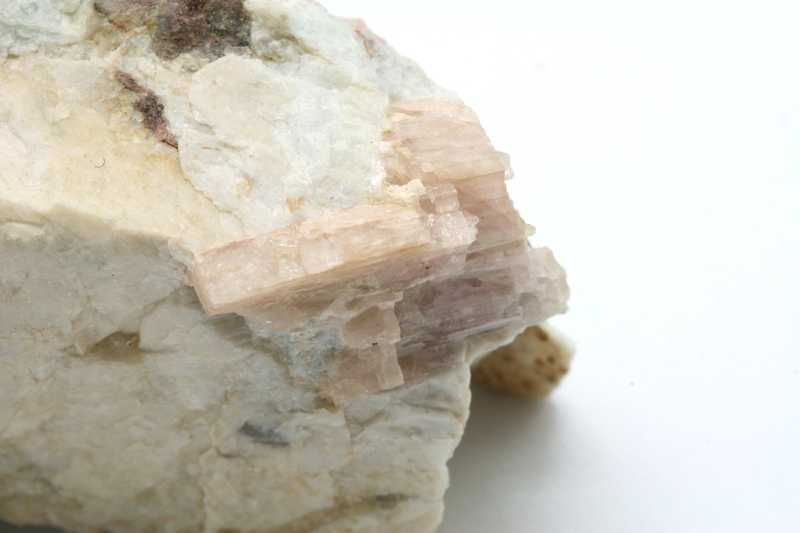 Sample of pink lithium tourmaline crystals, darrellhenryite, overgrown in pegmatite .
