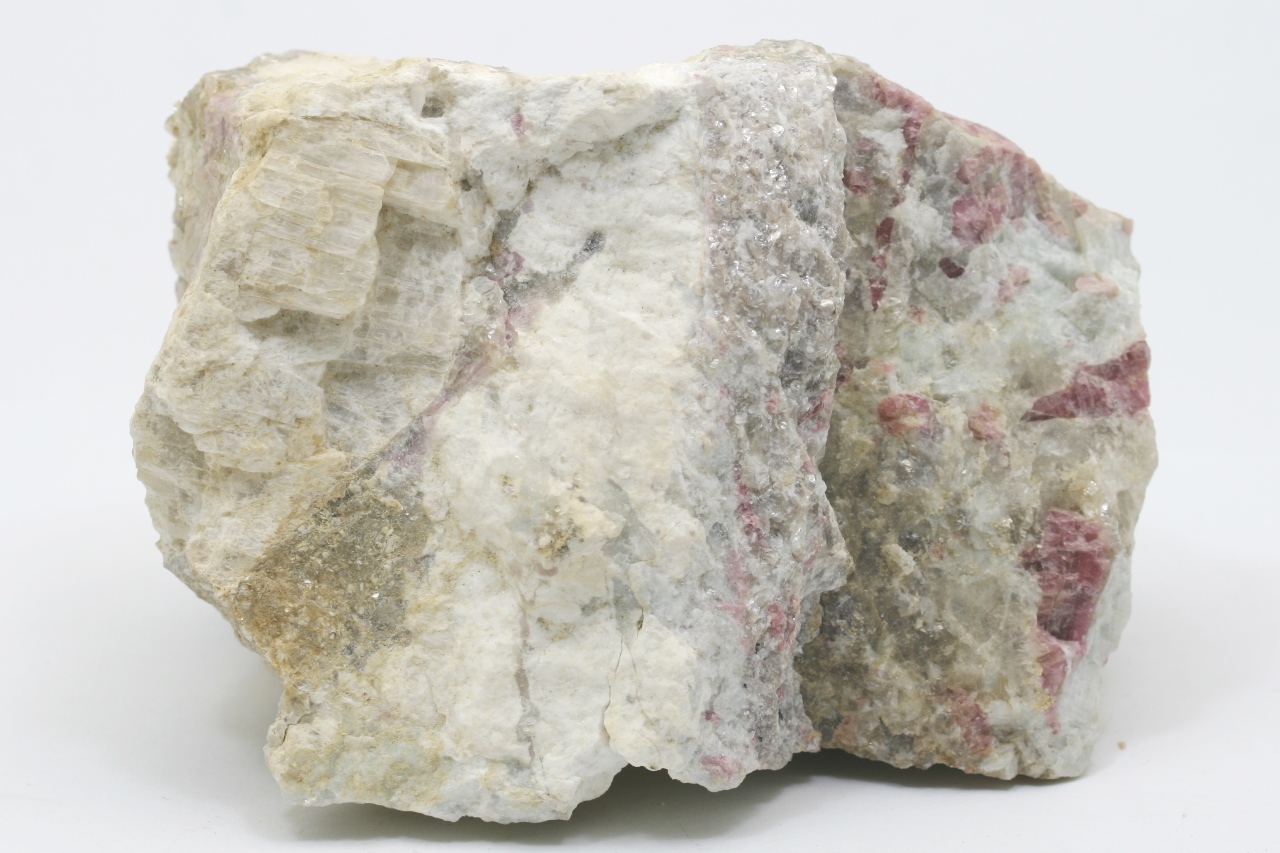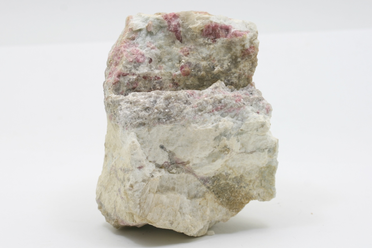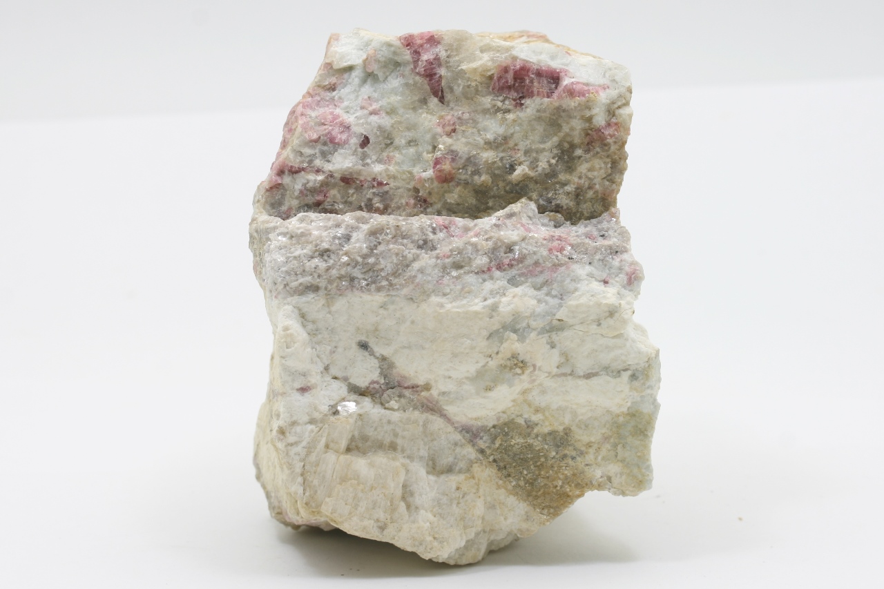 Columns of pink tourmaline darrellhenryite (type locality) with a vein of white petalite from a lithium pegmatite. The petalite vein is approximately 4.5 cm wide.