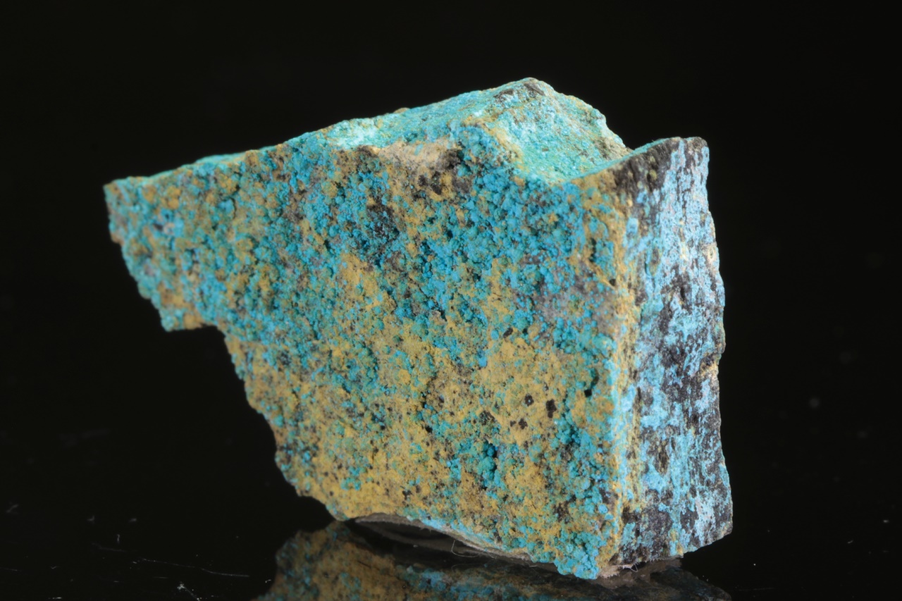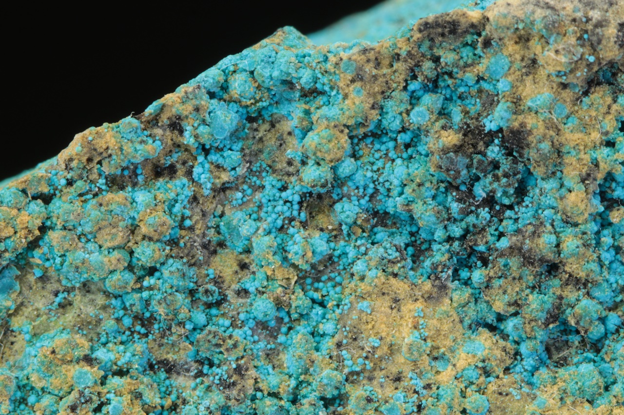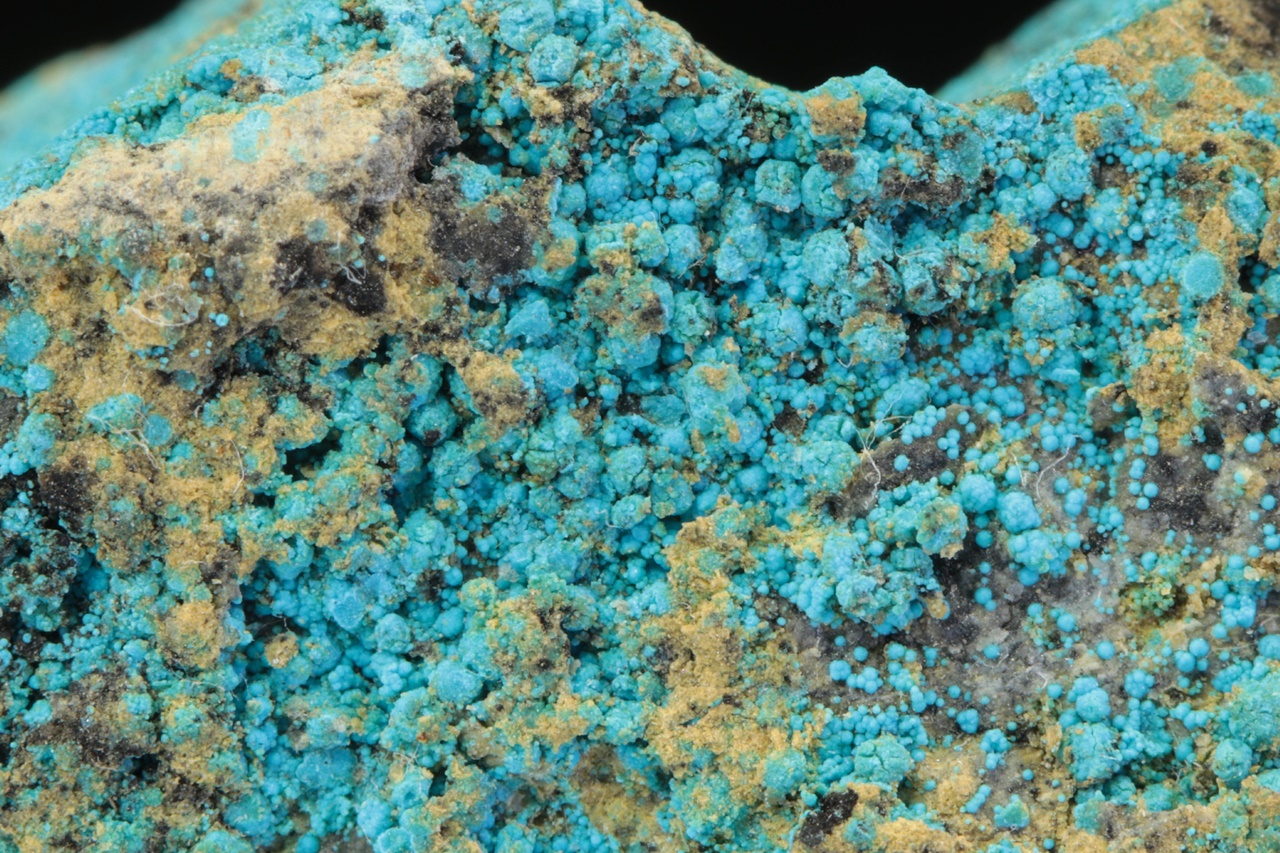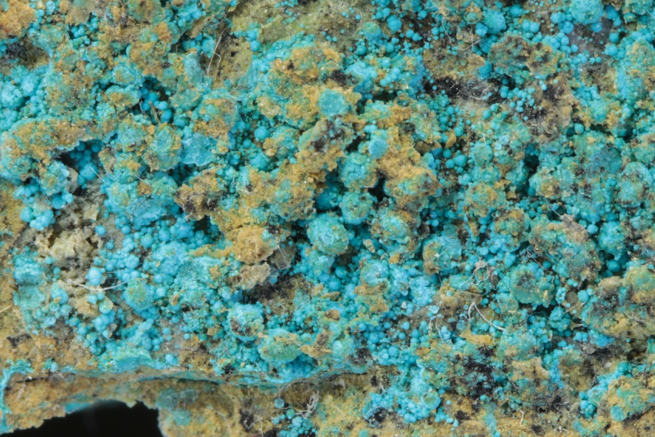 Rich sample of turquoise blue beads of the rare copper carbonate and rare earth elements – decrespignyite. This location is the type and only one known in the world.