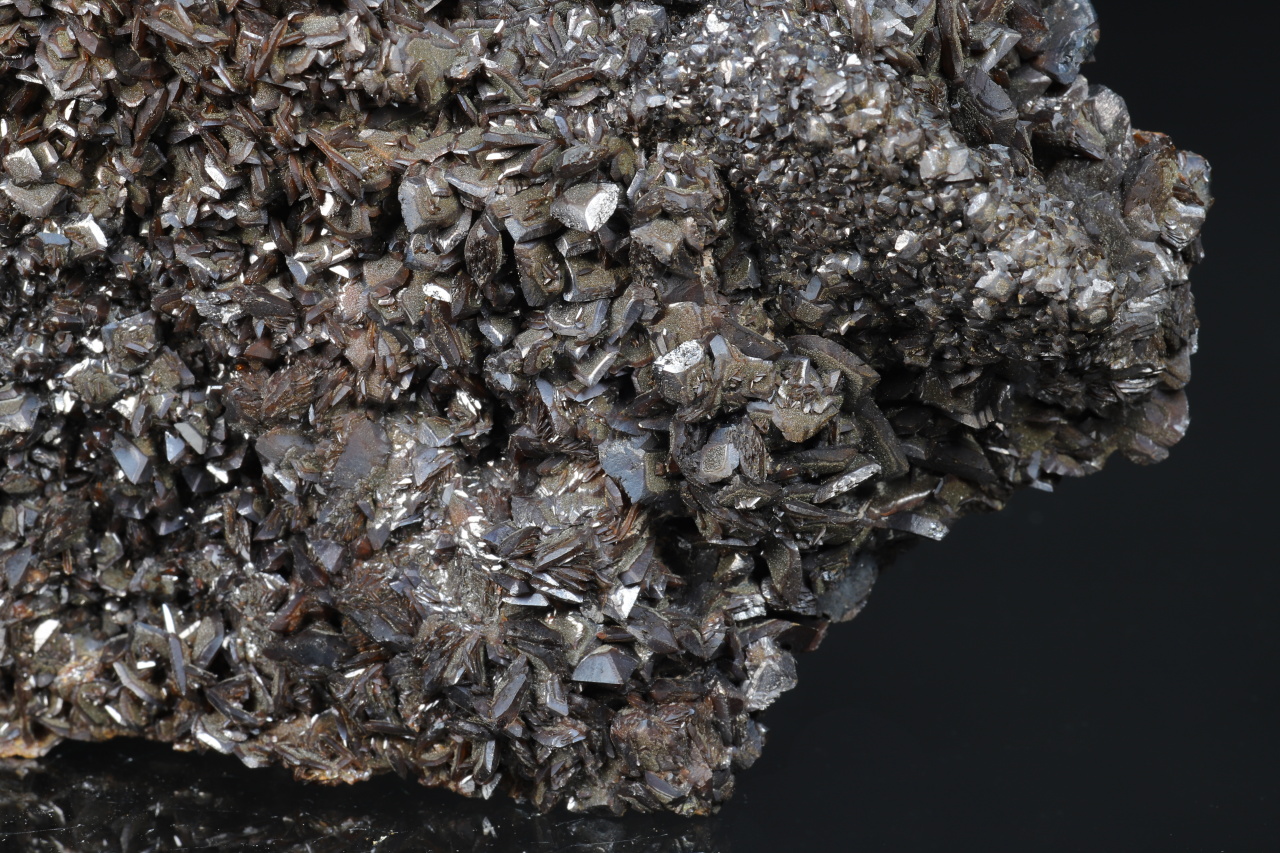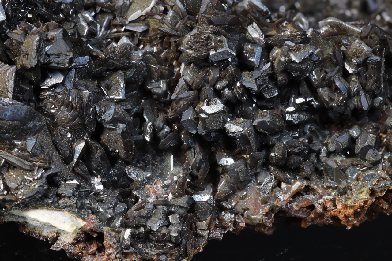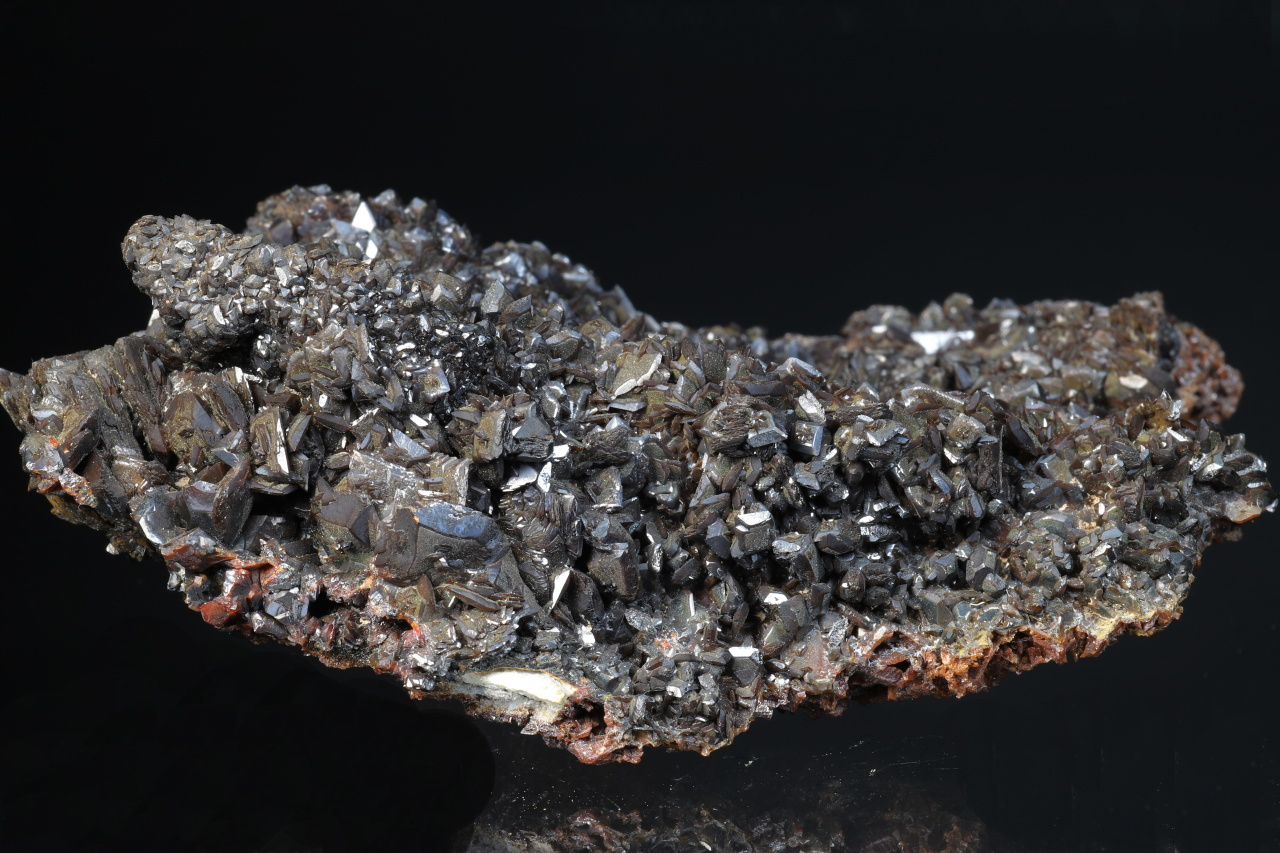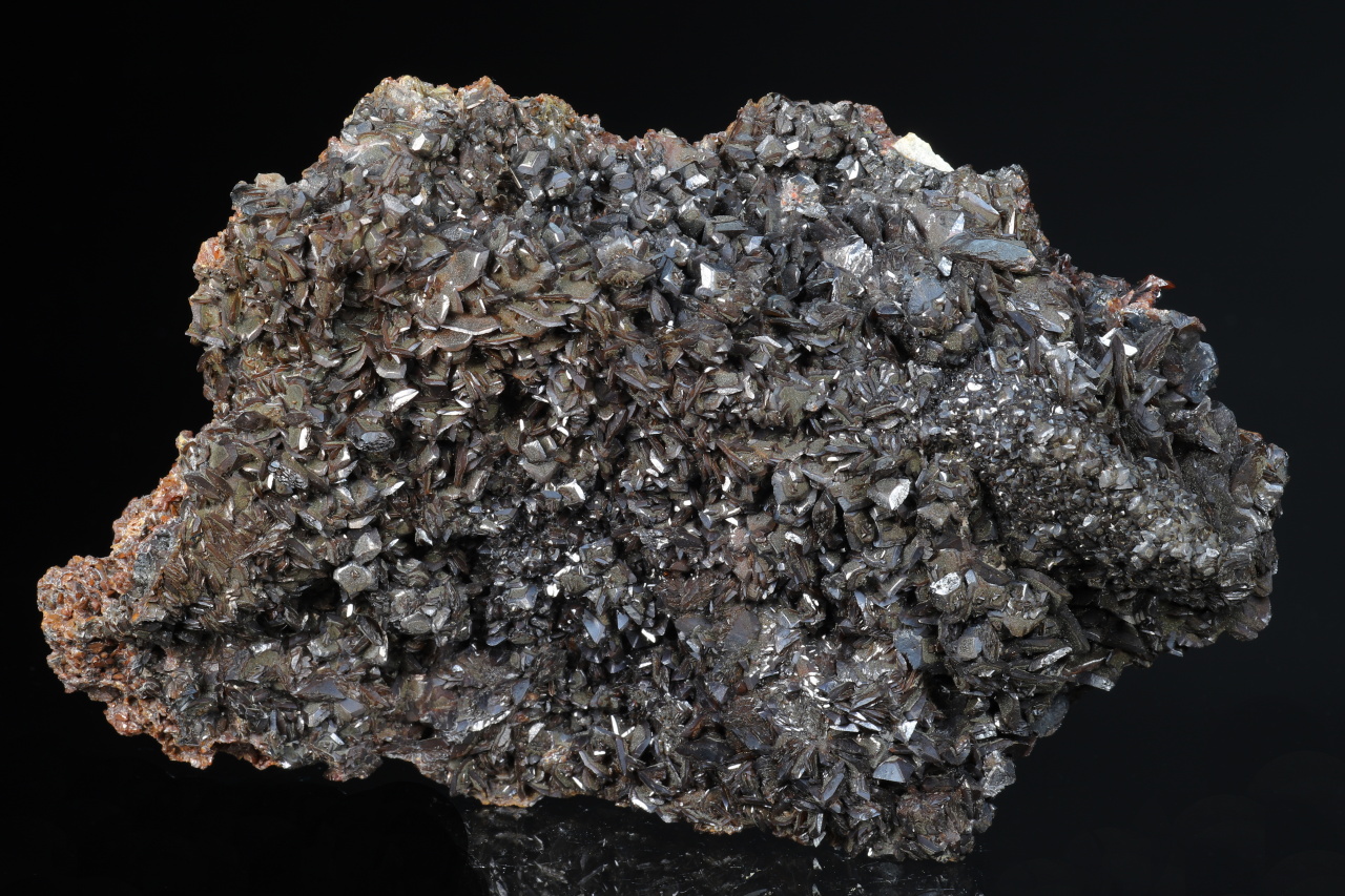 Velmi bohatá ukázka tvořená téměř výhradně až 12 mm velkými krystaly descloizitu, vanadátu olova a zinku. Tento kvalitní vzorek pochází ze slavného naleziště Berg Aukas v Namibii, odkud pochází nejlepší ukázky tohoto minerálu na světě.