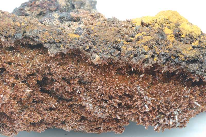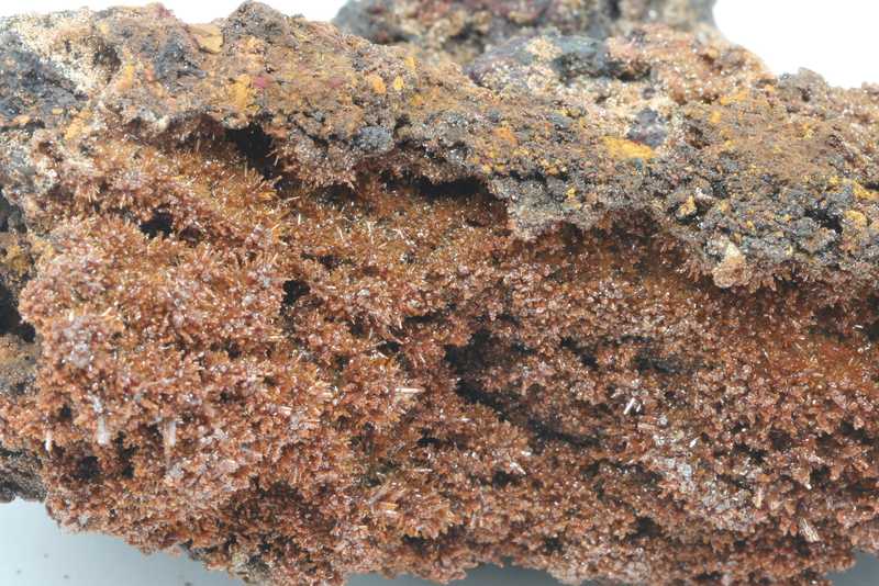 Beautiful specimen of Descloizite from the Mapimi locality, Durango, Mexico. A druse of glossy brown Descloizite crystals up to 7 mm in size.