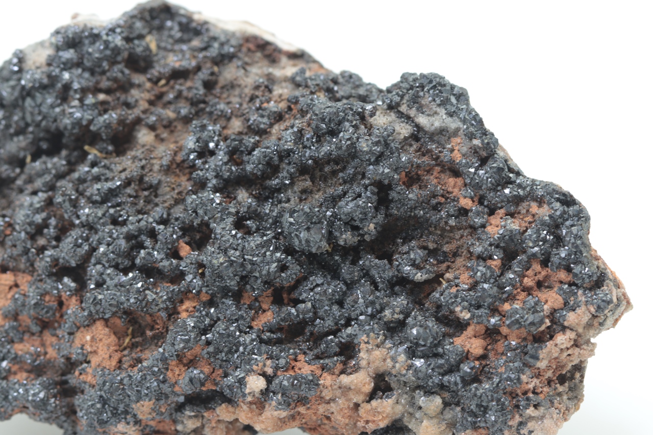 Nice specimen of zinc-lead vanadate. The sample contains dark, glassy luster tiny crystals of descloizite. Individual crystals also grow on each other and thus form clusters consisting of many crystal individuals. The crystals grow on a limonite-altered substrate. Due to the high luster of individual crystals and their number, this is an aesthetic specimen of this mineral.