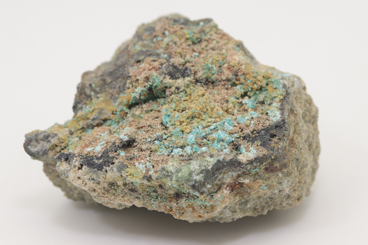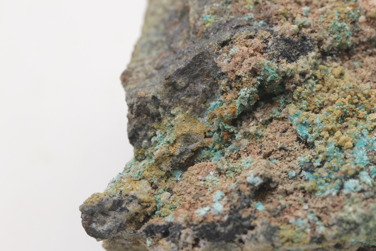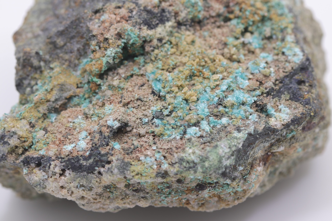Devilline forms small, blue-green, acicular crystals that grow into radial aggregates. Most of these aggregates reach a size of 3 mm. Individual devilline aggregates grow into the surrounding minerals and substrate. This sample is a nice example of devilline from the locality Špania Dolina.