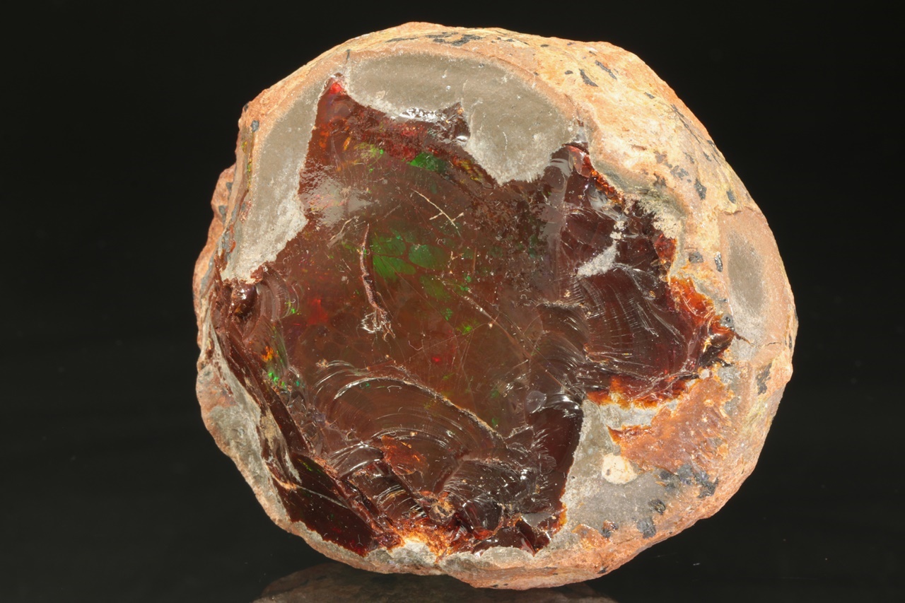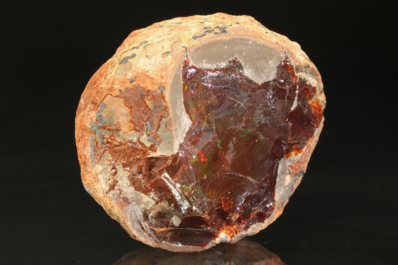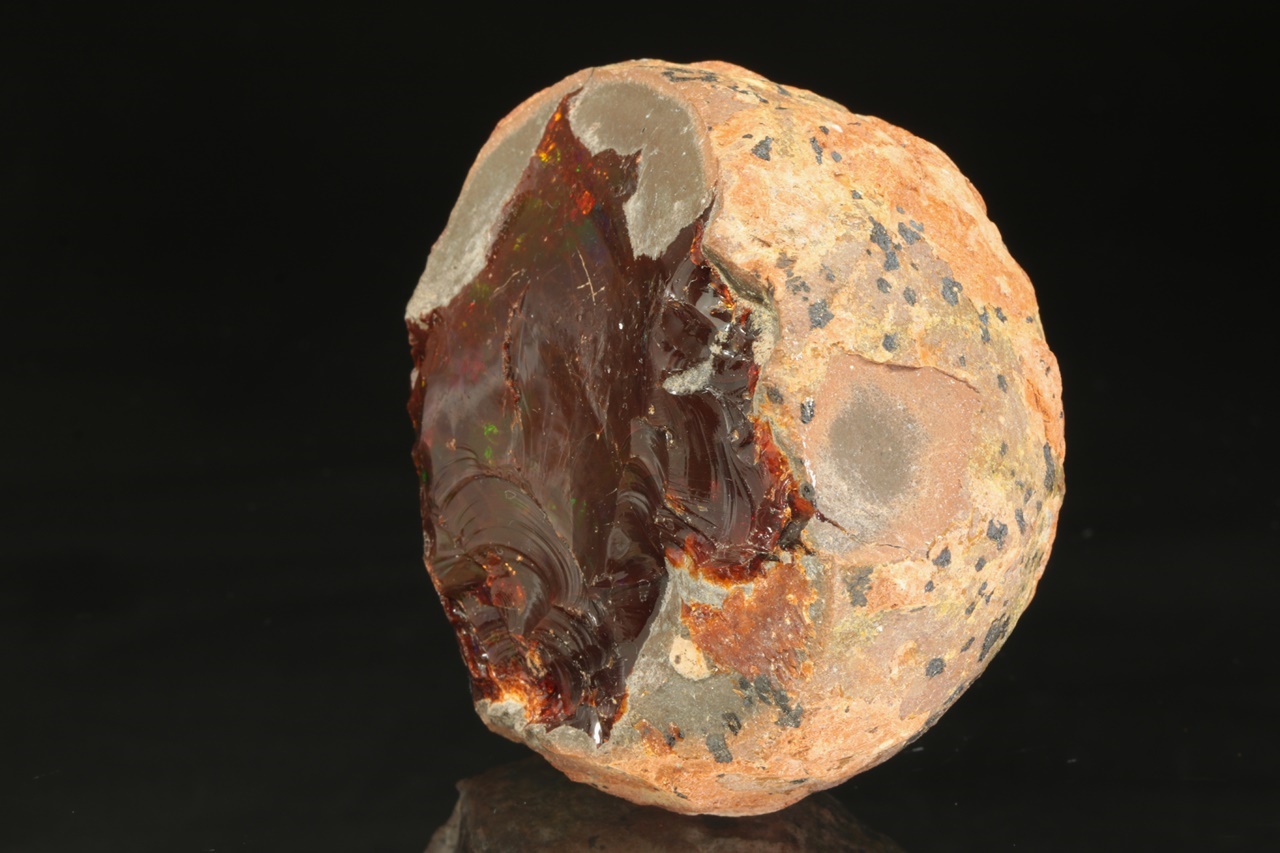 Velká nodule oranžového opálu s výraznou červeno zelenou opaliscencí.