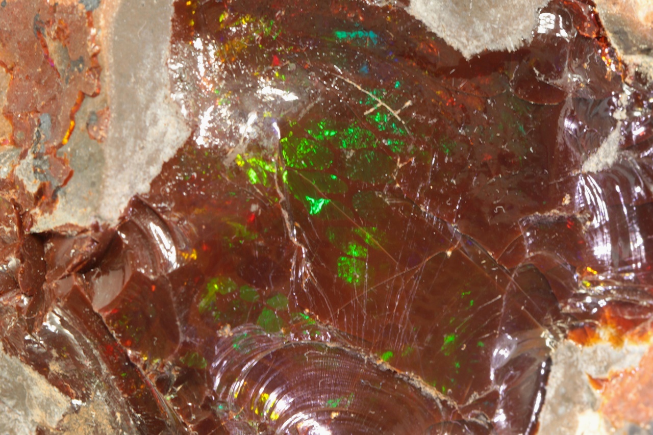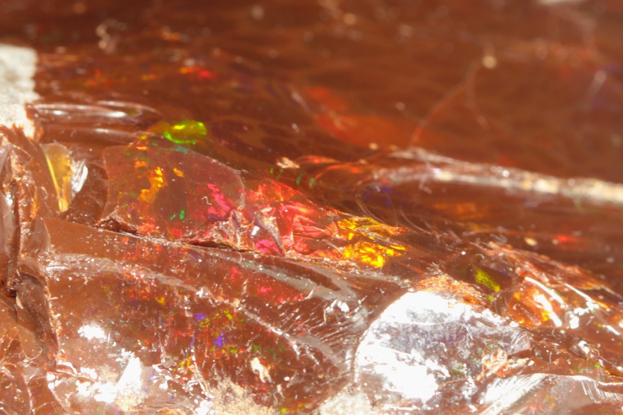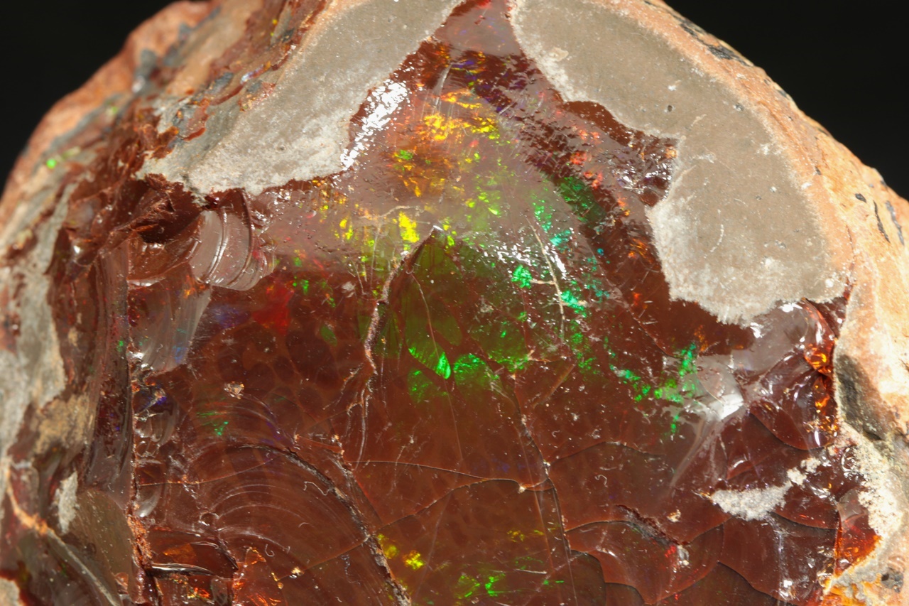 Velká nodule oranžového opálu s výraznou červeno zelenou opaliscencí.