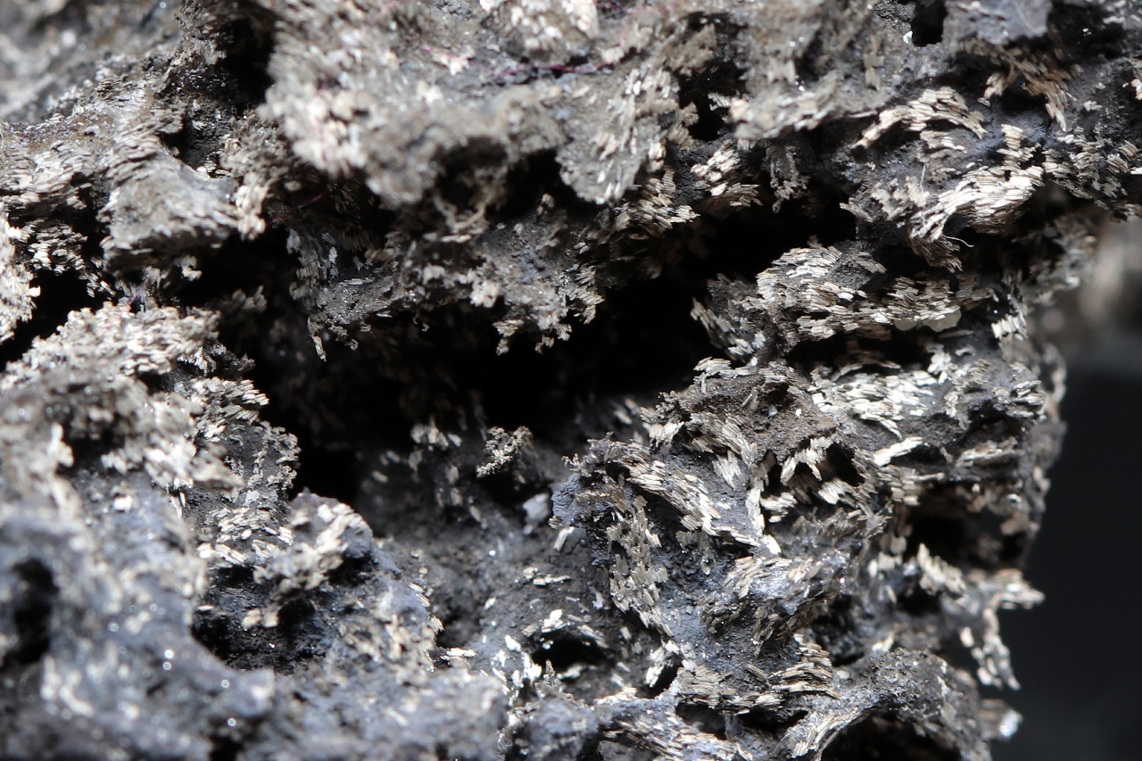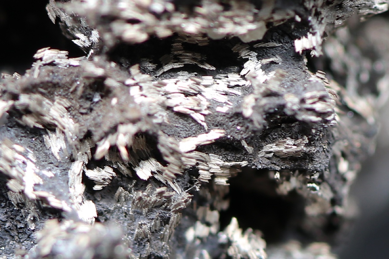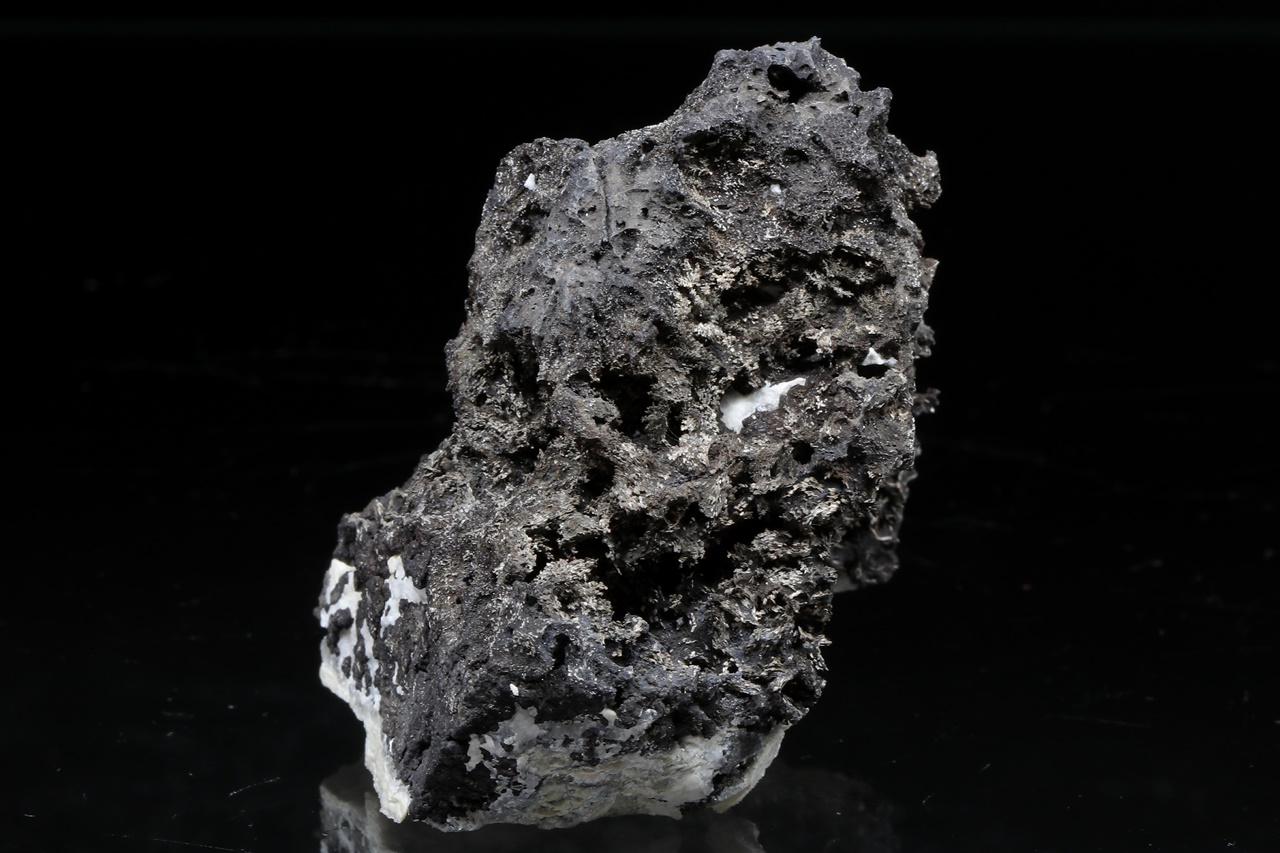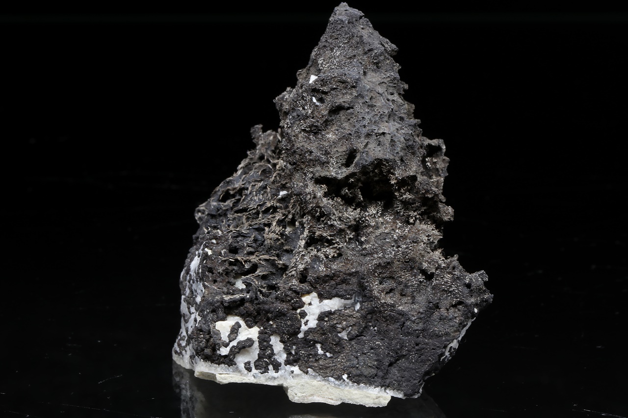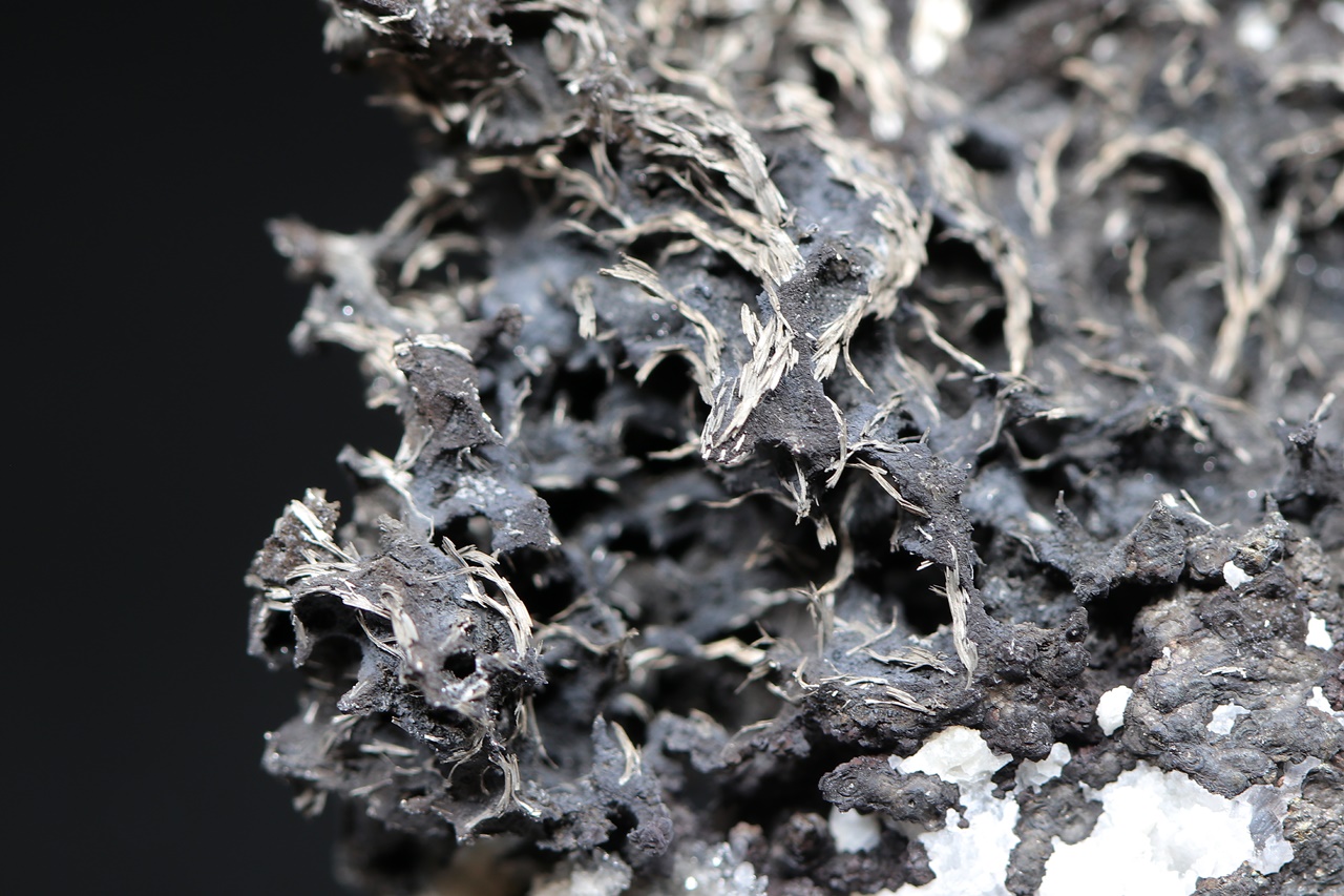 Dendritic crystals of metallic lustrous Dyskrazite in black Arsenic, which penetrate with white Quartz. The sample cannot be sent, it is only possible to pick it up personally in our store.