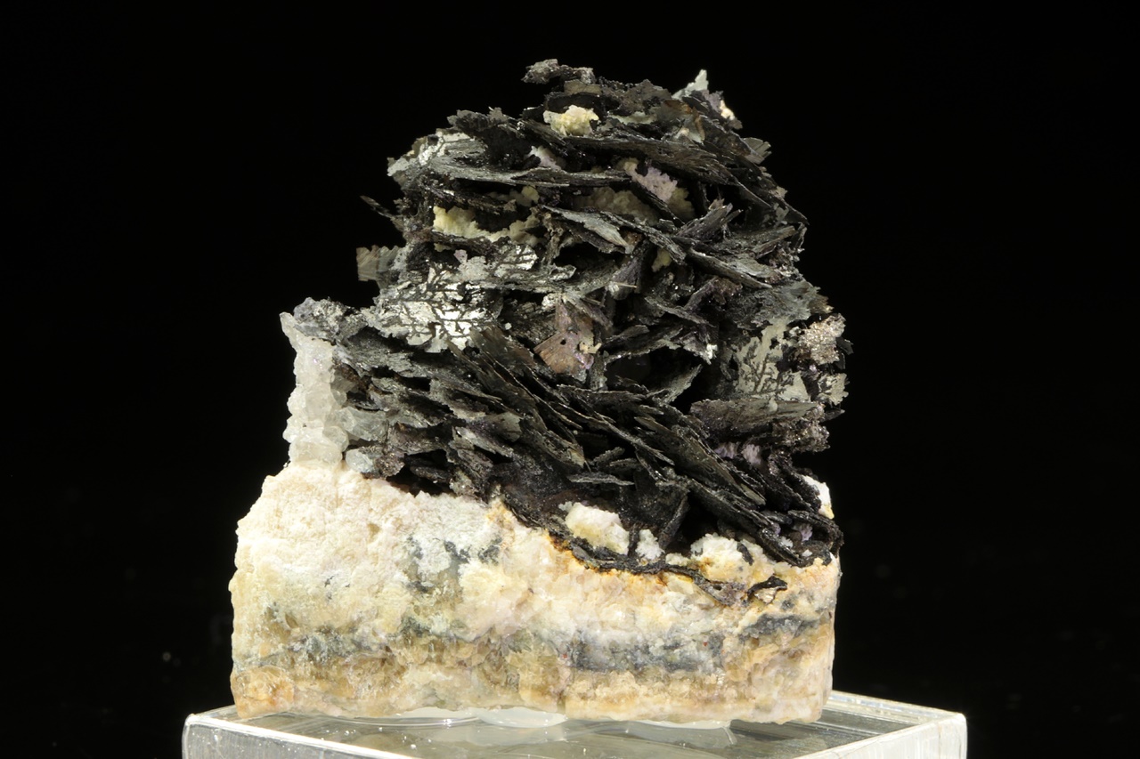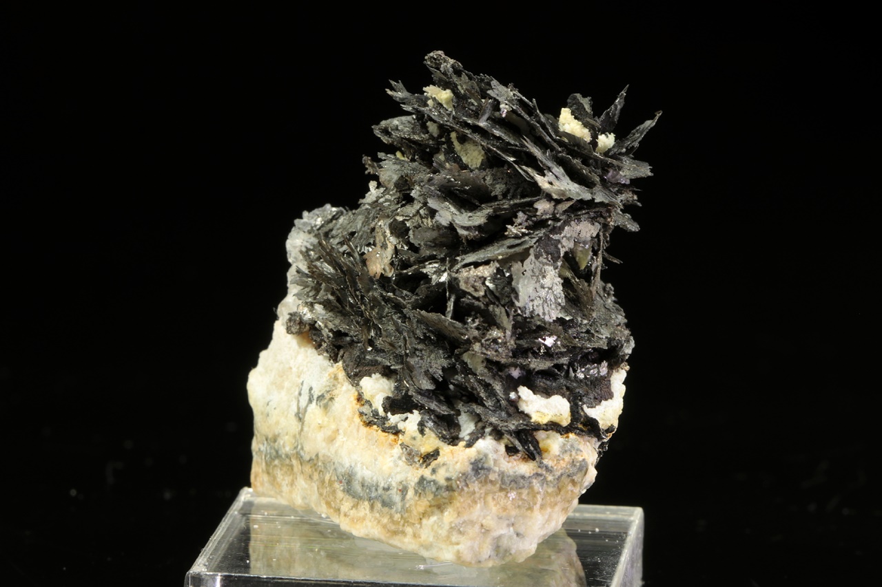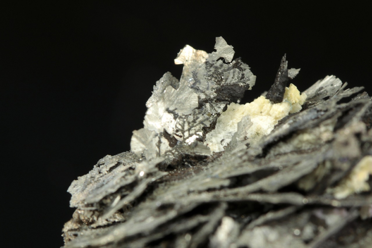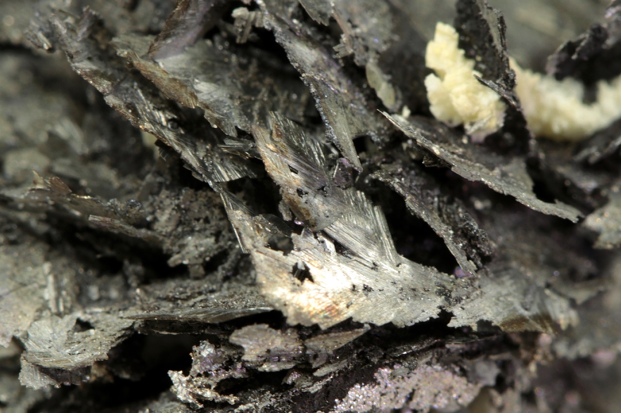 Cluster of pliš-like crystals of metallic lustrous dykrazite up to 1 cm in size.