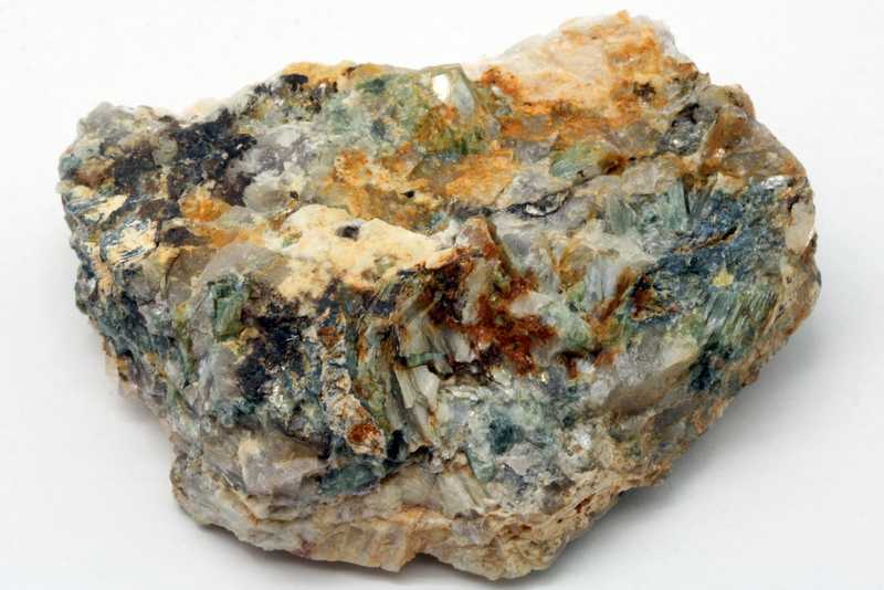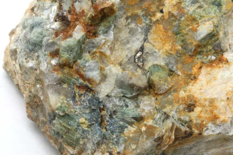 Sample of elbaite crystals from the Lhenice locality, Czech Republic. Specimen with green columnar tourmaline crystals up to 7 mm in size.