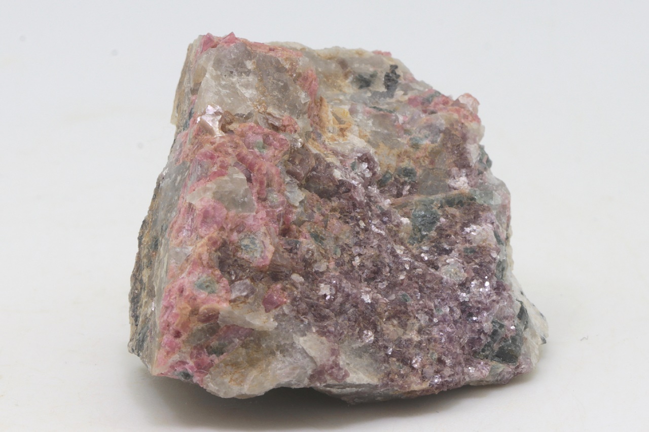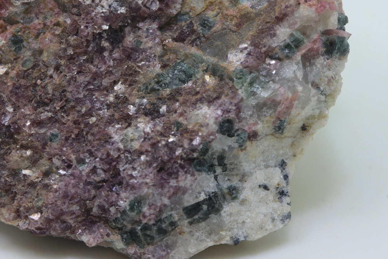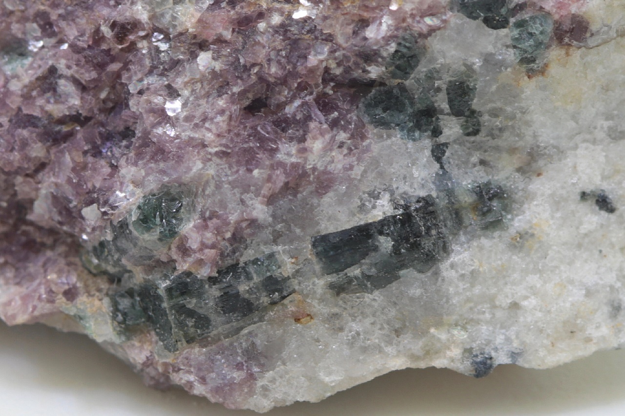 Rose and dark blue crystals, sometimes also bicolored elbaite with purple lepidolite.