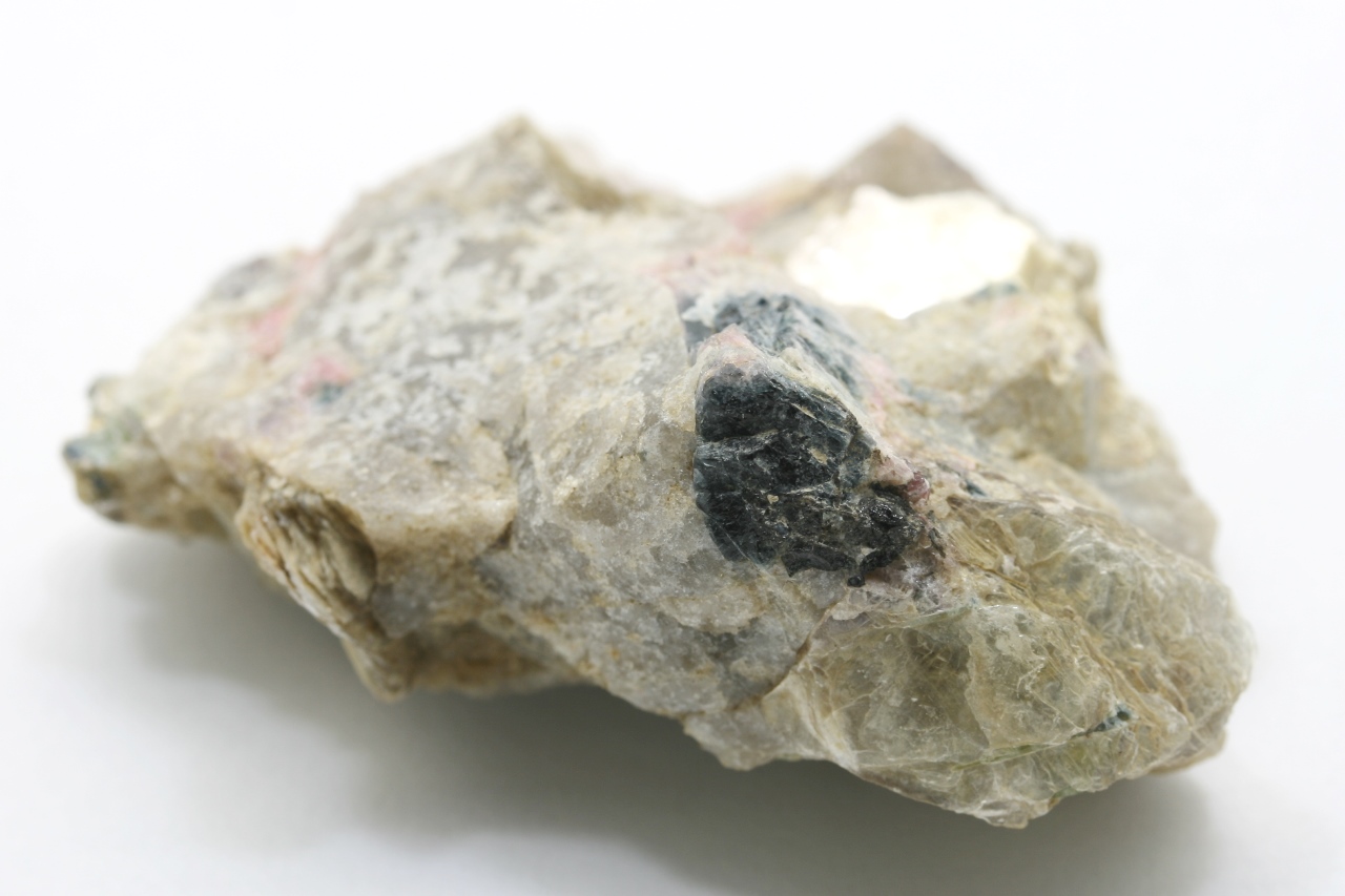 Grain and partially covered crystal of dark green elbaite. The grain is 1.5 cm in size.