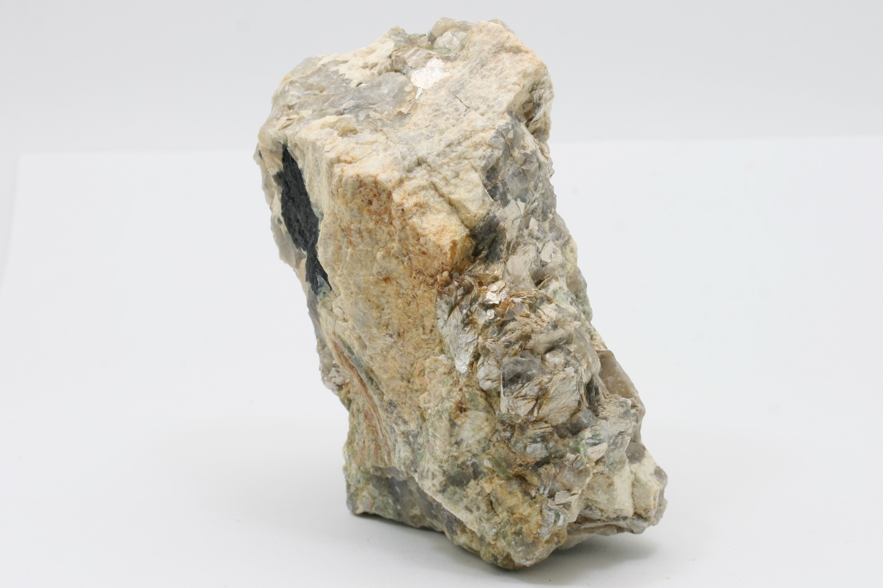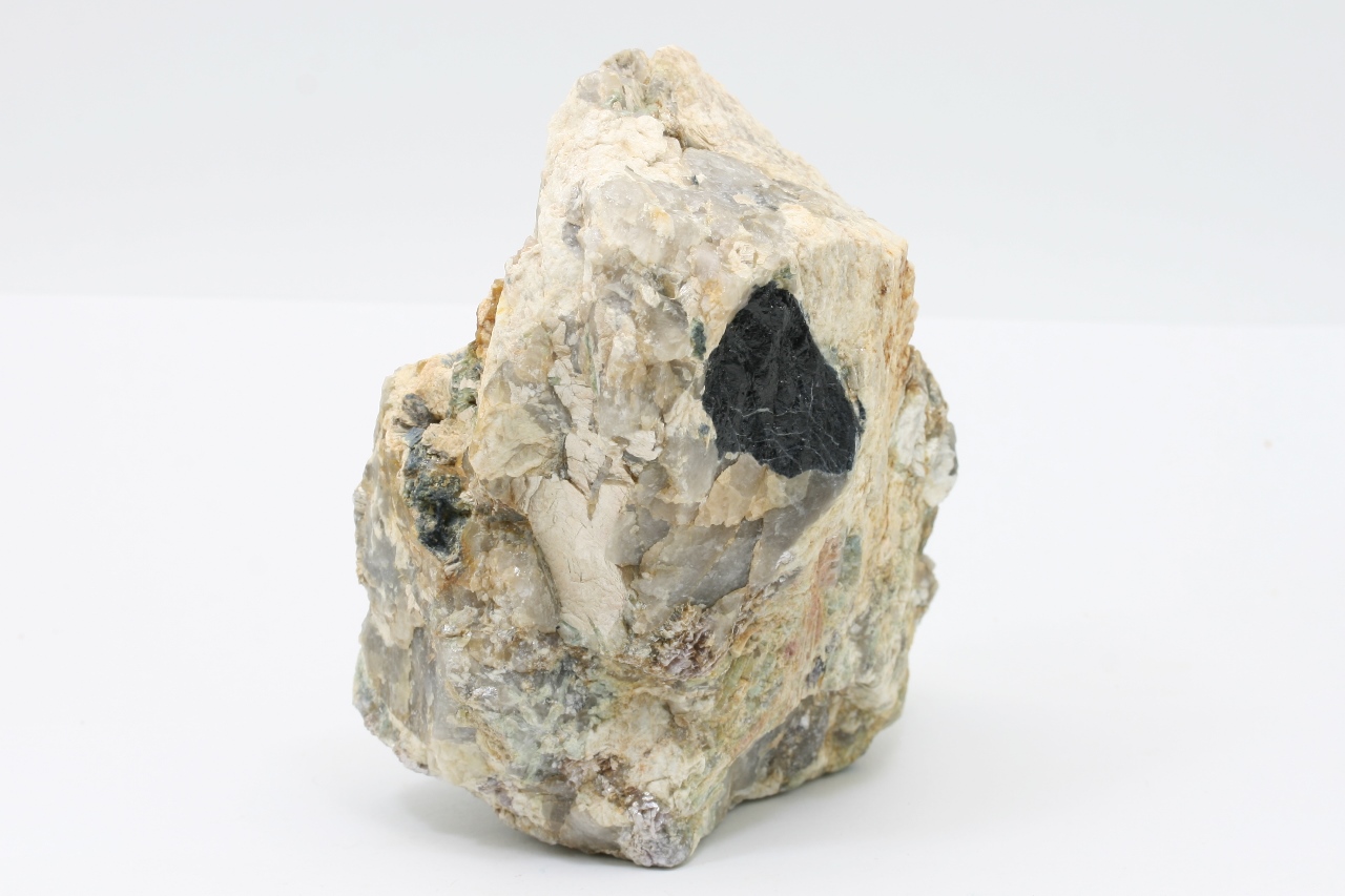 Large grain of dark green tourmaline (3.5 × 2 cm) with light pink, shiny lepidolite.