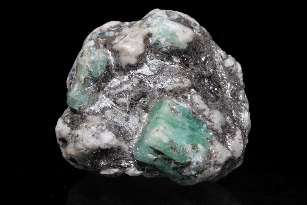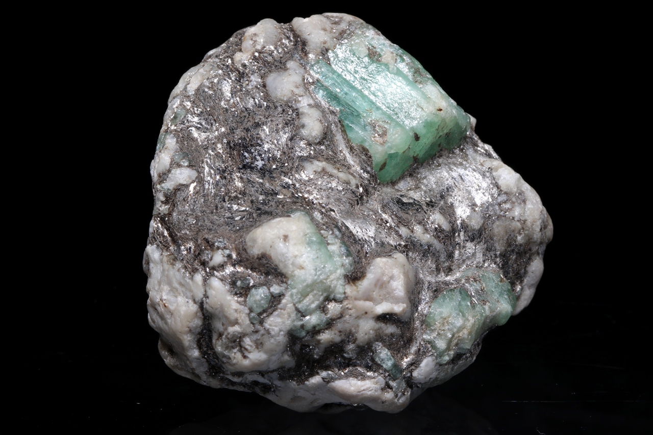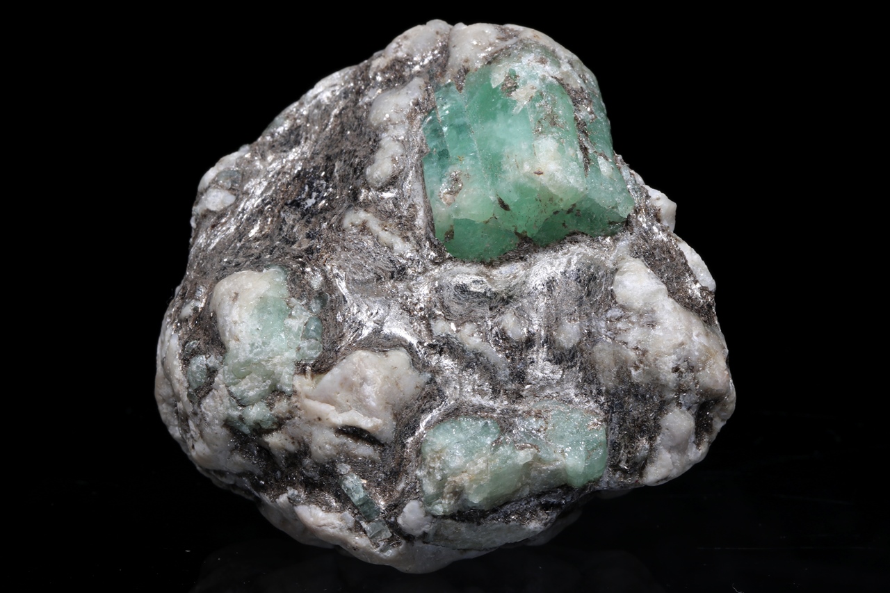 Aesthetic specimen of Malyshovite emeralds with the mother rock. The largest emerald measures 17 x 15 x 11 mm.