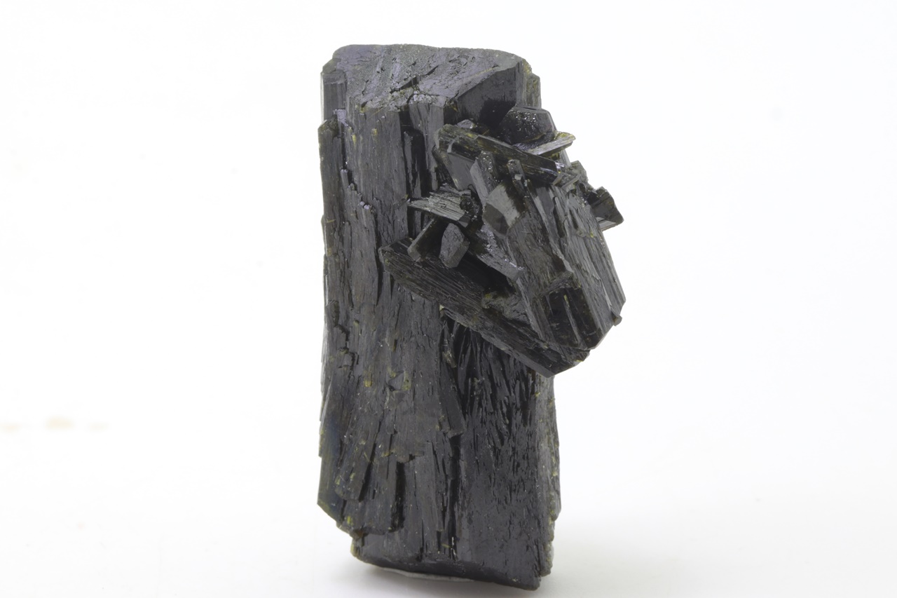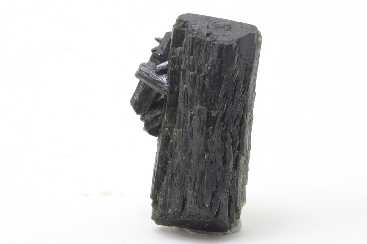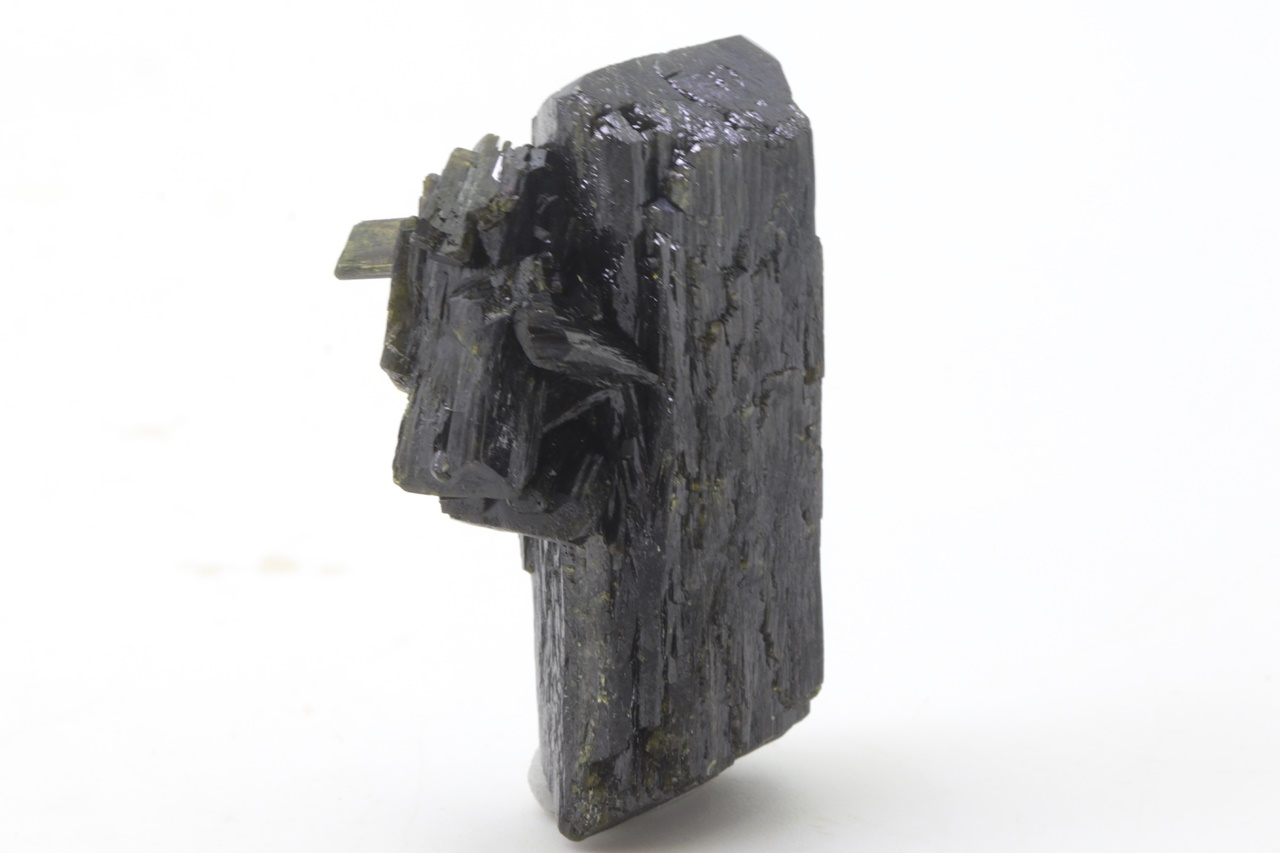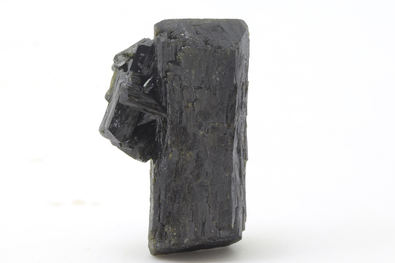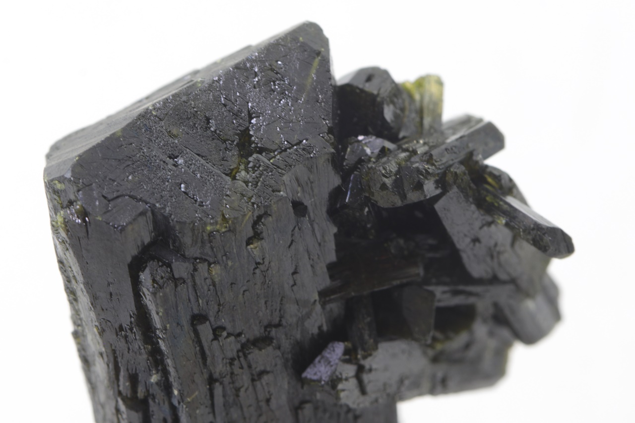 5 cm large, double-terminated crystal and several smaller crystals of dark green to black Epidote.
