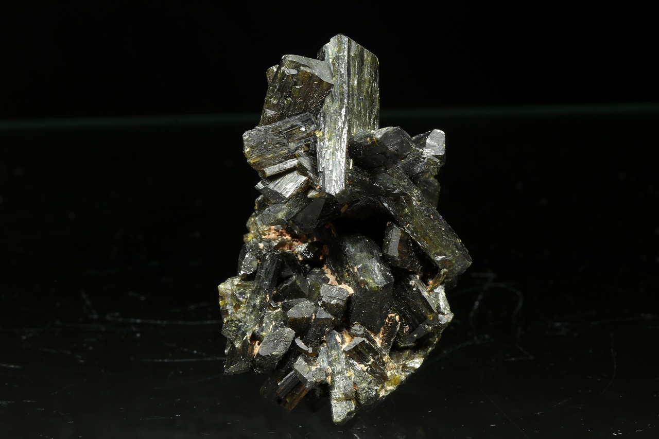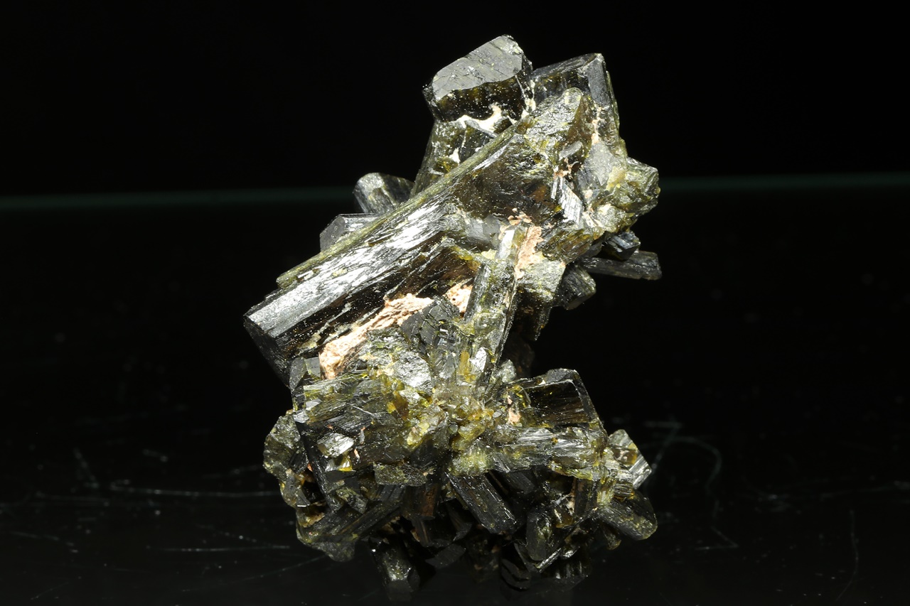 Cluster of dark green double-terminated epidote crystals up to 4 cm large.