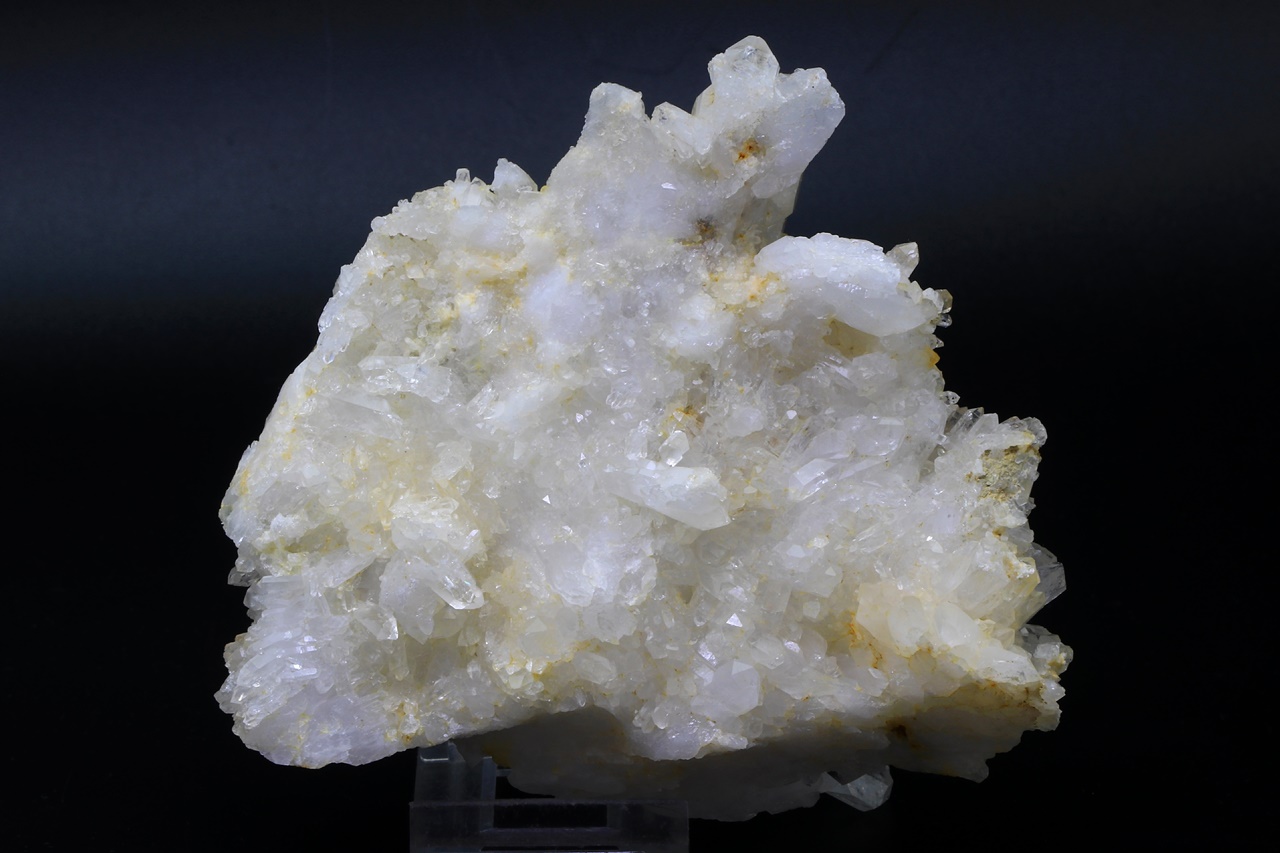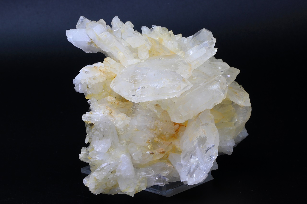 Cluster of clear crystal quartz crystals with an unusual tabular habit called “fade quartz”. The largest crystal is 5.5 cm in size.