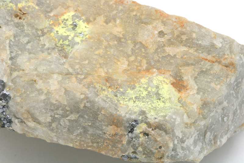 Sample of yellow ferrimolybdite aggregates. Ferrimolybdite and molybdenite from the Krupka locality.