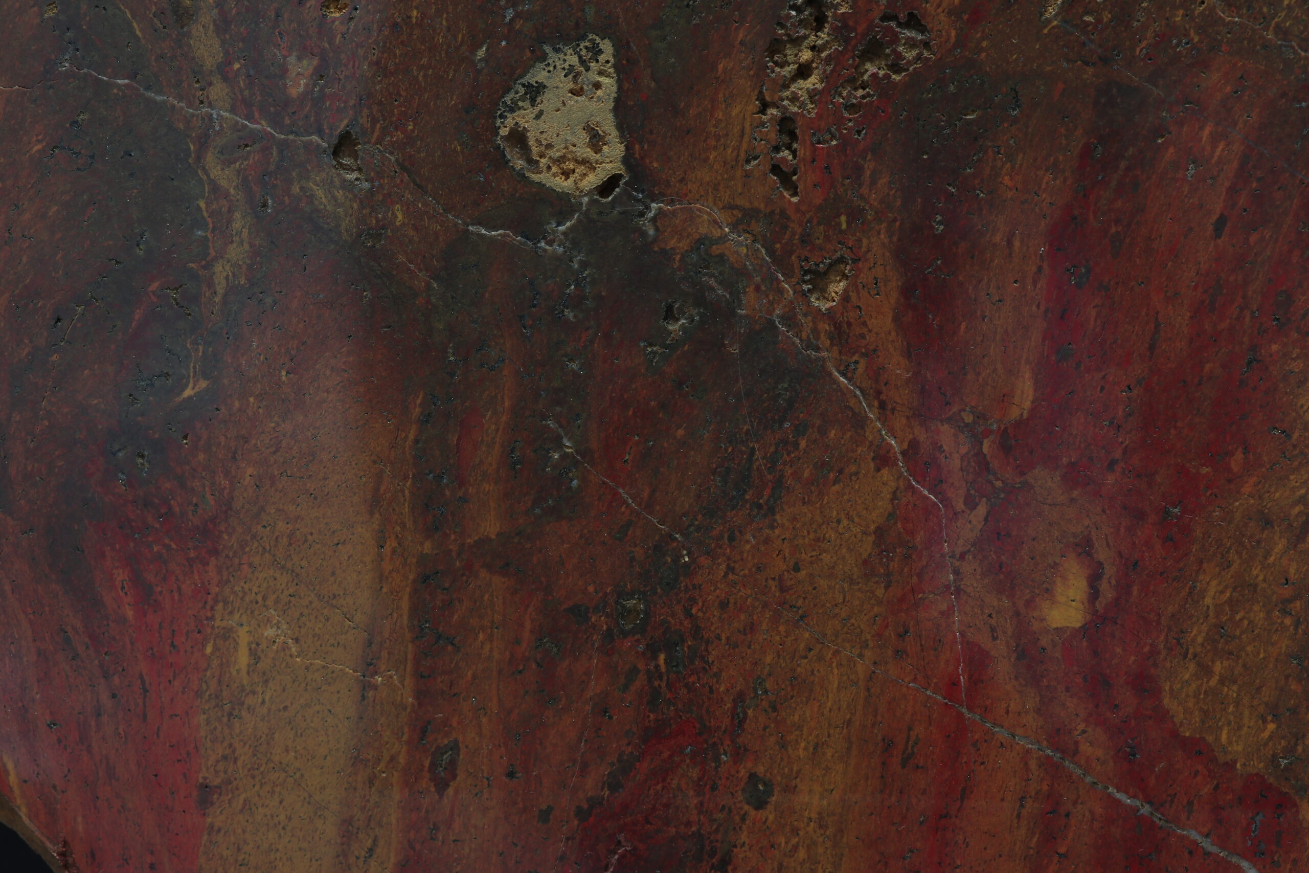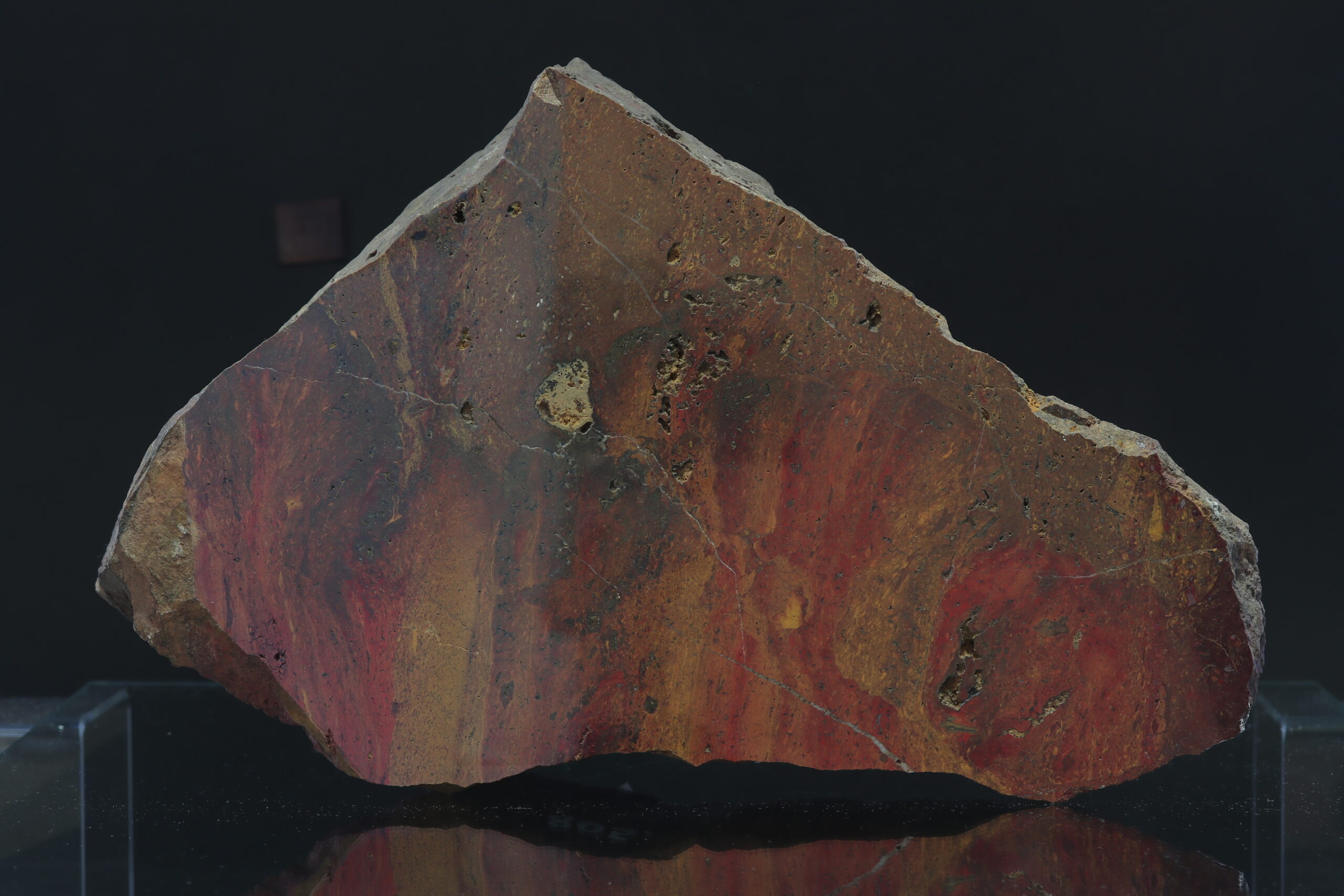 A large sample of iron quartz from the Komárov locality. The specimen has a unique pattern. The specimen is polished.