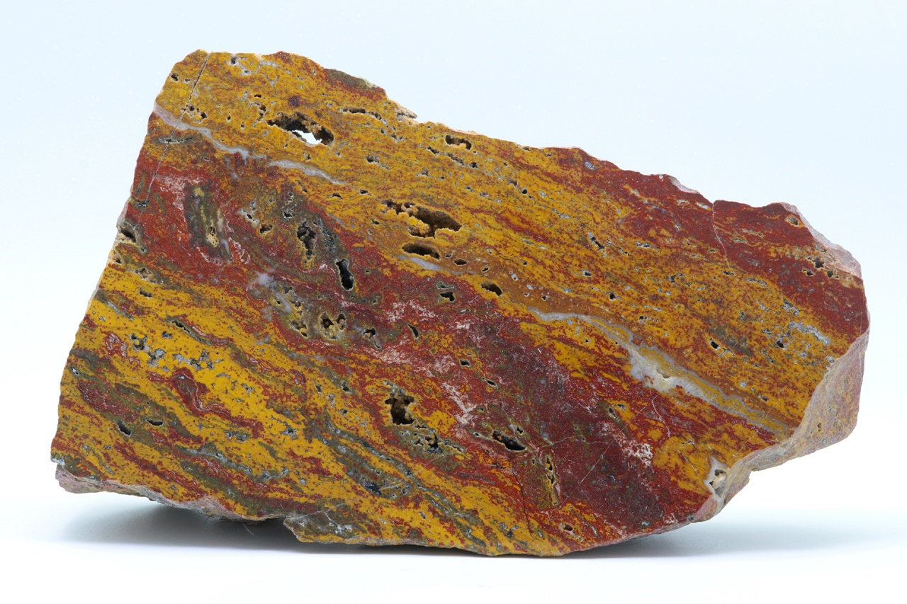 Large sample of beautiful polished iron quartz with prized yellow-red banding.