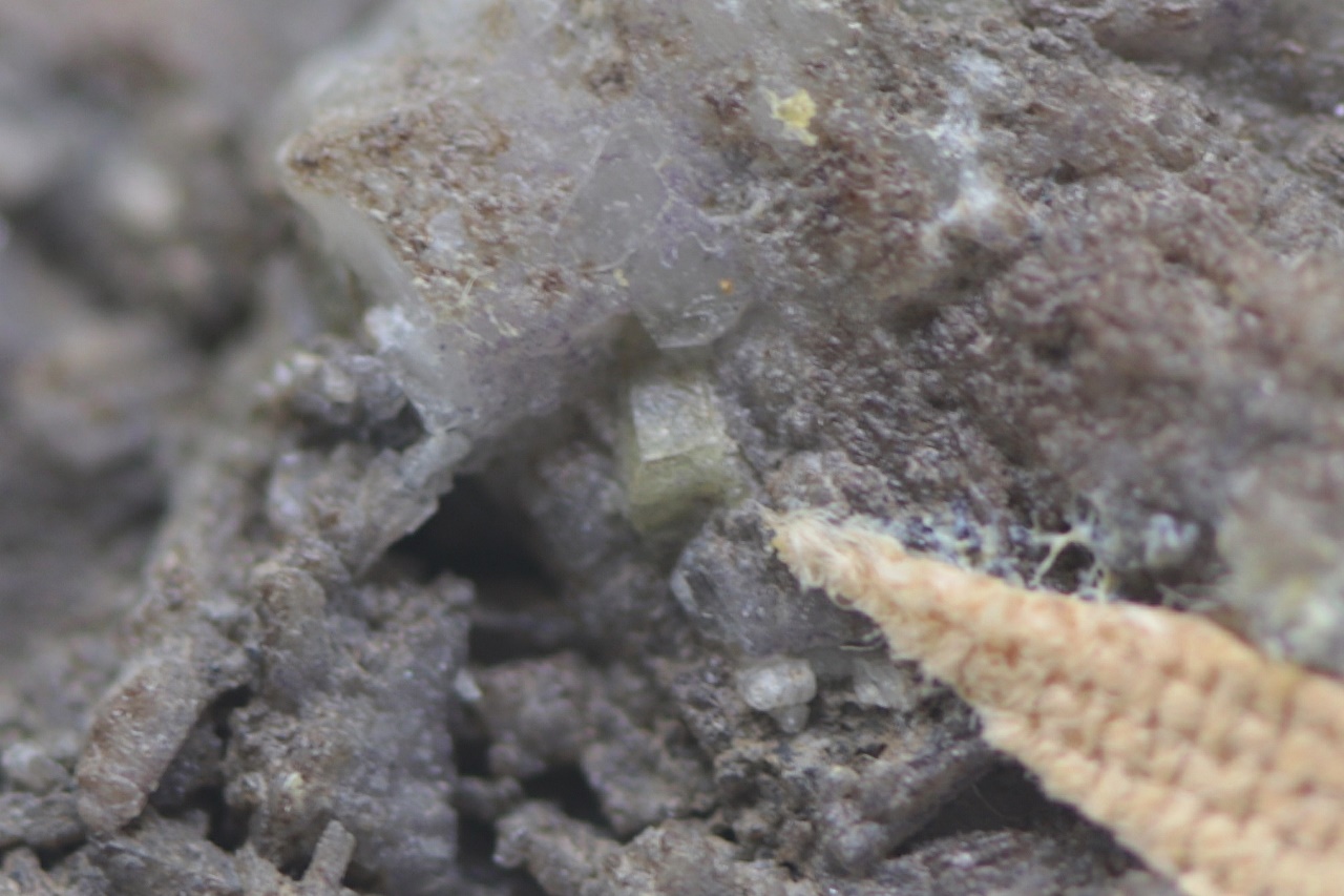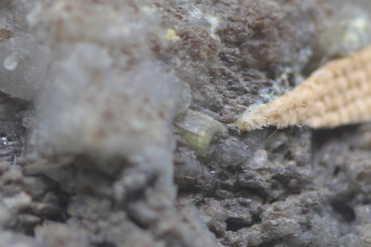 Approximately 1 mm sized yellowish crystal of the rare strontium and calcium phosphate from the type locality.