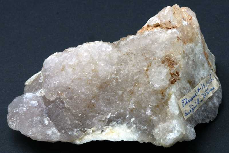 Nice specimen of fluorite from Jílové from 1974. Sample of cubic crystals of pink to violet fluorite.