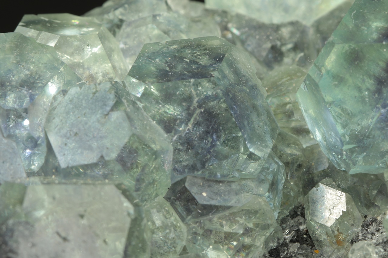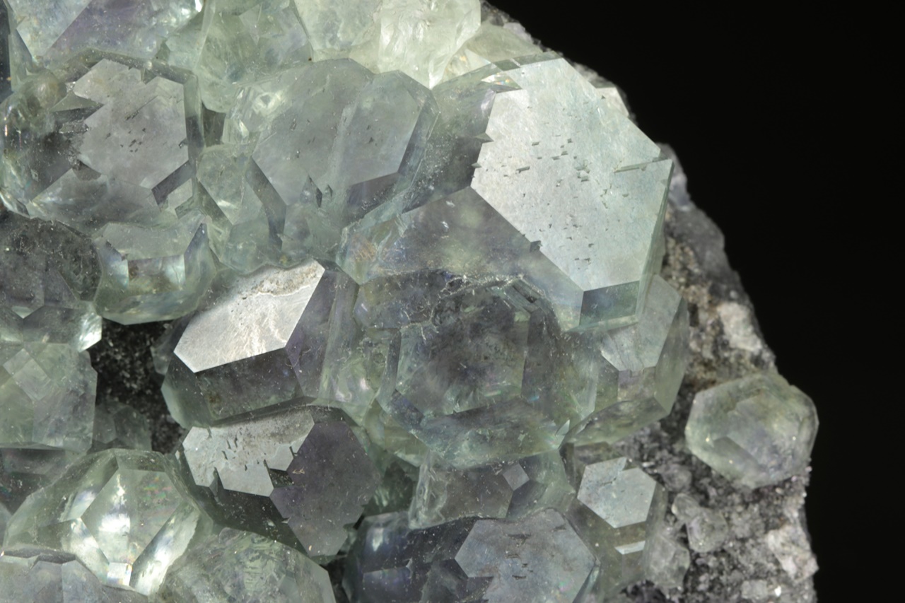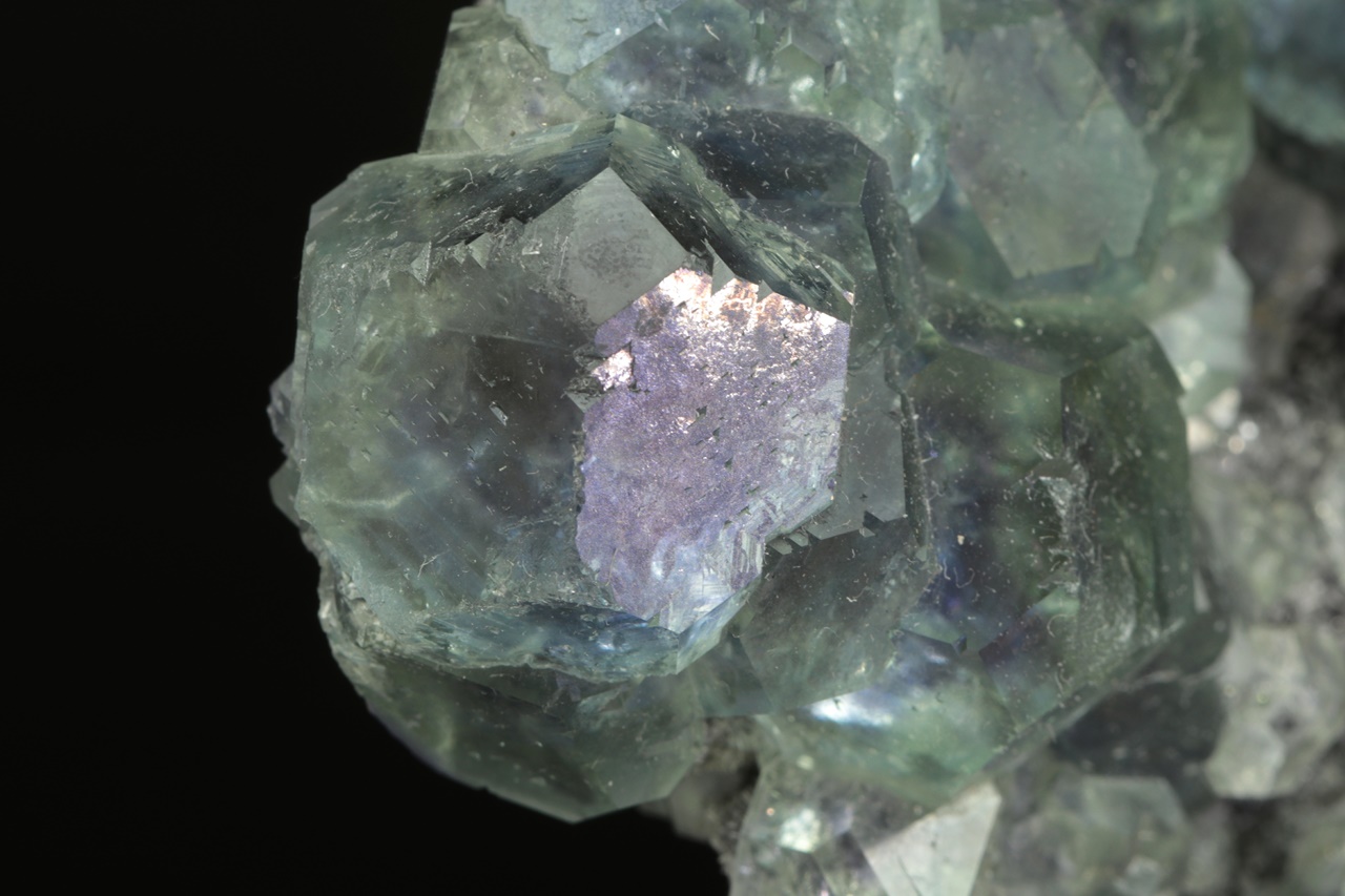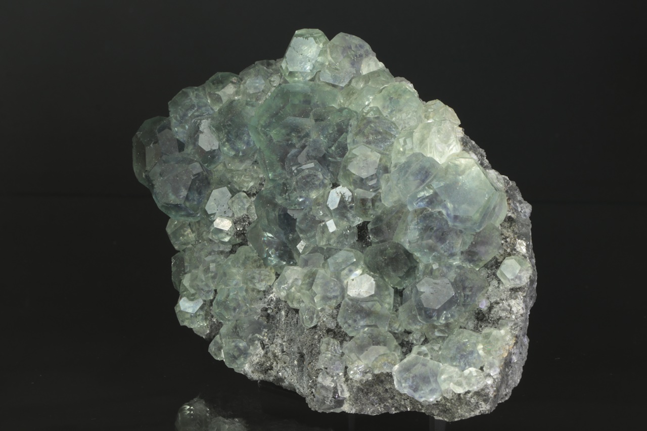 A magnificent druse of crystals of light green Fluorite with purple centers formed by the combination of a cube with an octahedron. The Fluorite is very pure and almost transparent, with the largest crystals being up to 2.5 cm in size.