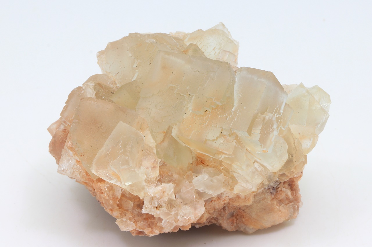 Transparent, colorless Fluorite crystals from a well-known German locality. The largest crystal is 4.5 cm in size.