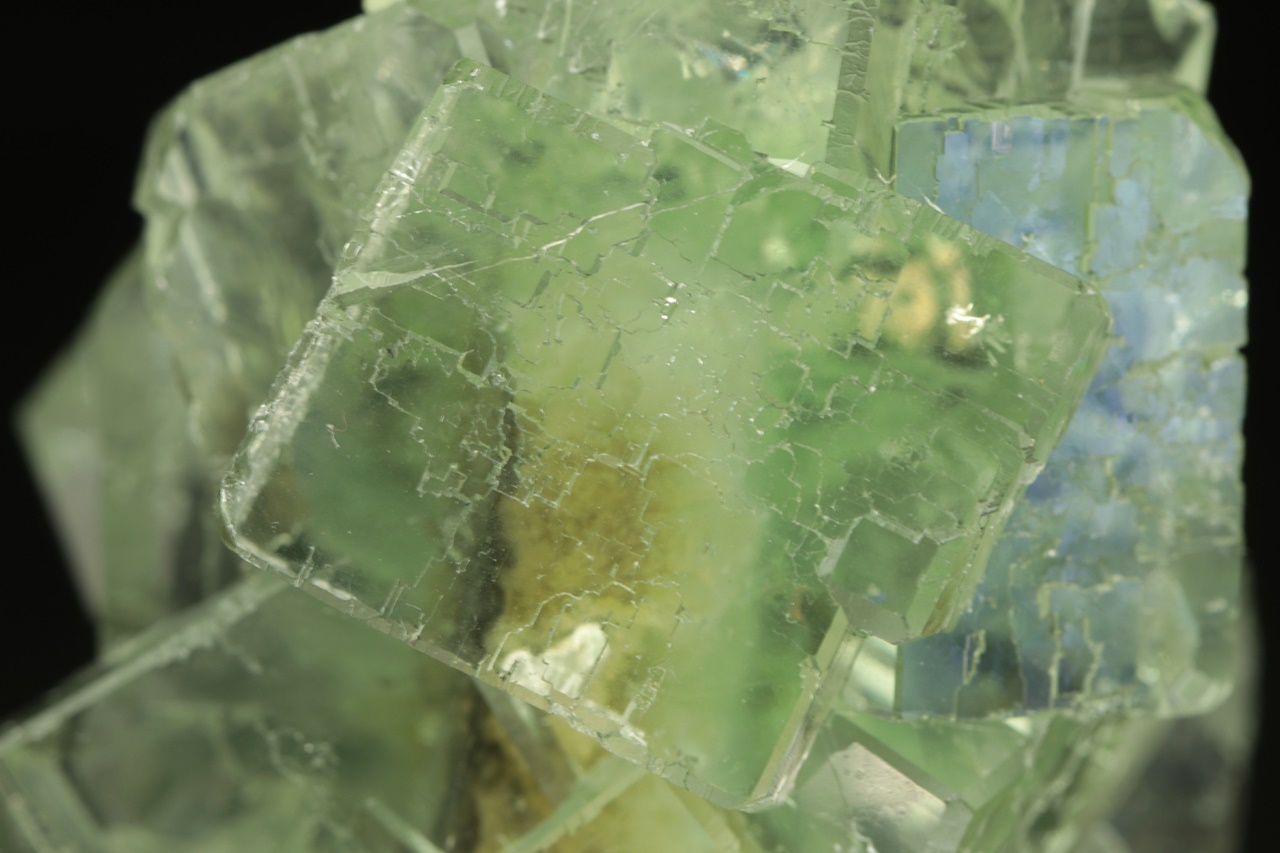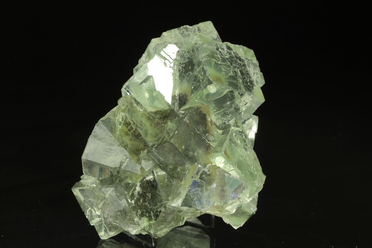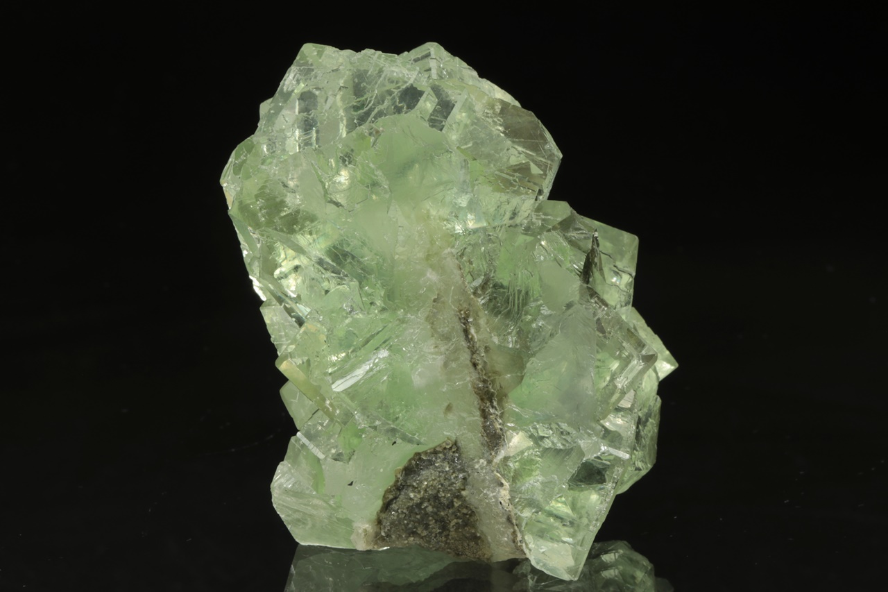 Beautiful druse of light green cubic crystals of transparent, very glossy fluorite. The largest crystal is 2.5 cm in size.