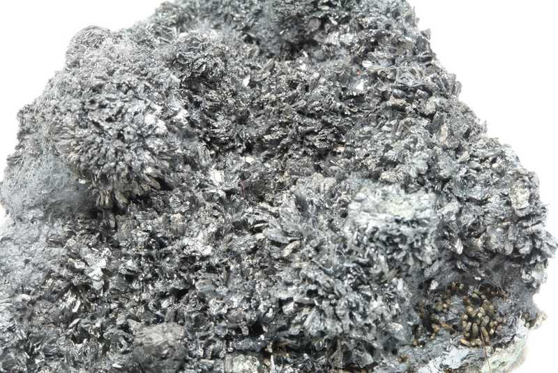Specimen of crystallized antimony, tin, iron and lead sulfide franckeite from Bolivia. Collection specimen of flaky, metallic lustrous crystals up to 5 mm large of rare franckeite from the Bolivian type locality.
