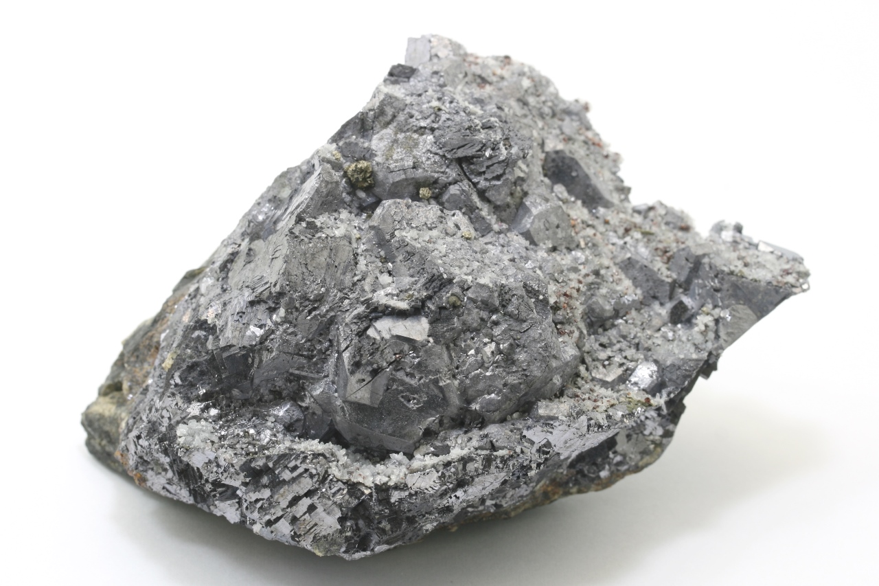 Large crystals of Galenite covered with crystals of Quartz and Sphalerite. Representative sample from the Příbram uranium mines.