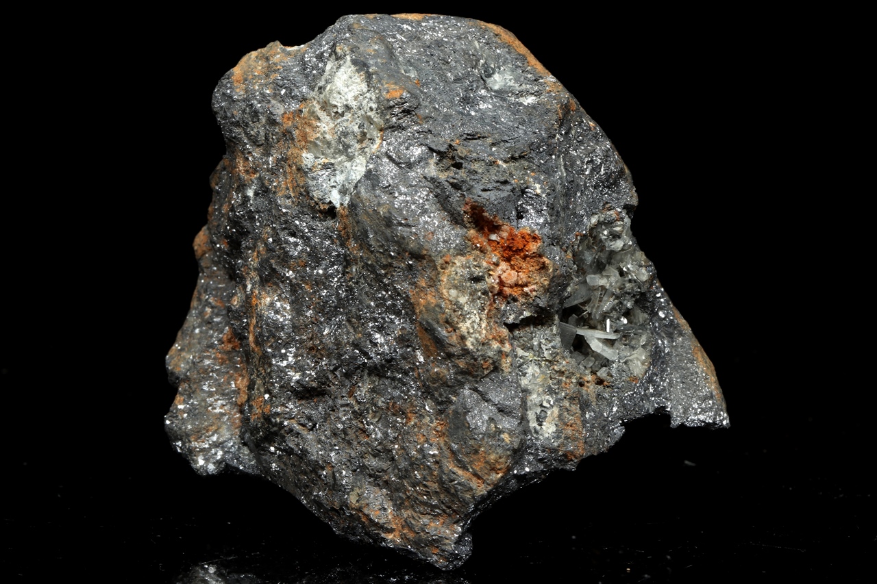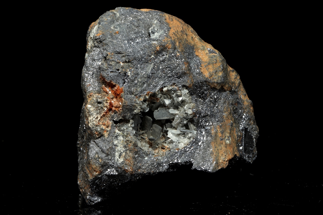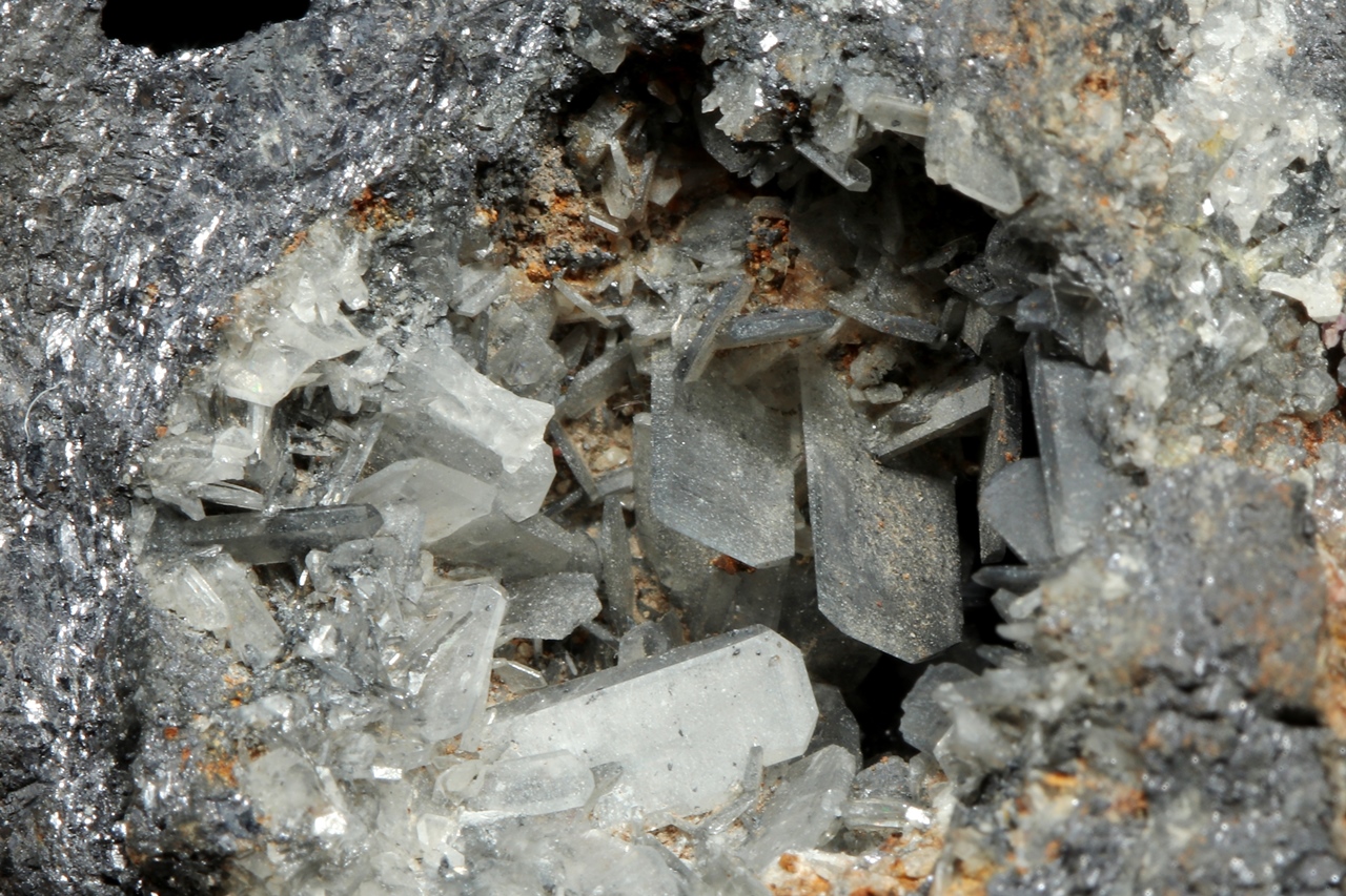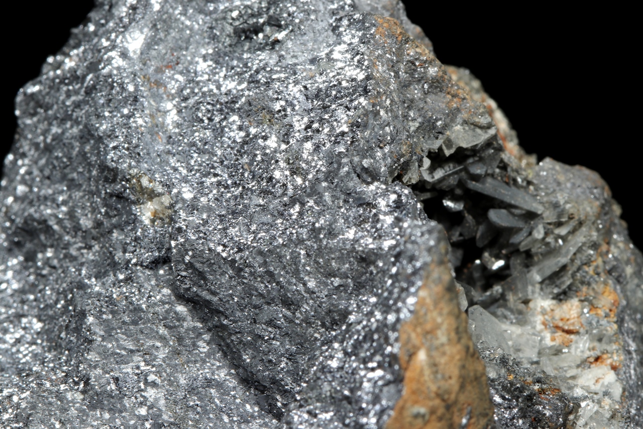 Silver-gray, highly lustrous crystals of Galena in association with lead sulfate Anglesite are a well-known lead ore .