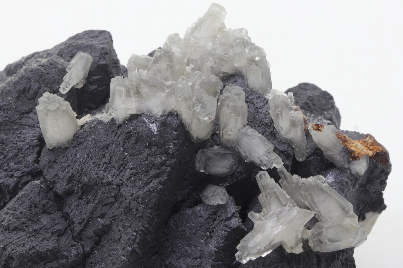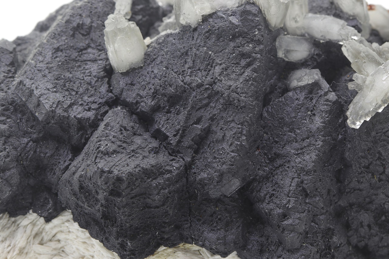 A cluster of Galena octahedra with slightly skeletal development covered with up to 12 mm large crystals of white Calcite from a classic Austrian locality.