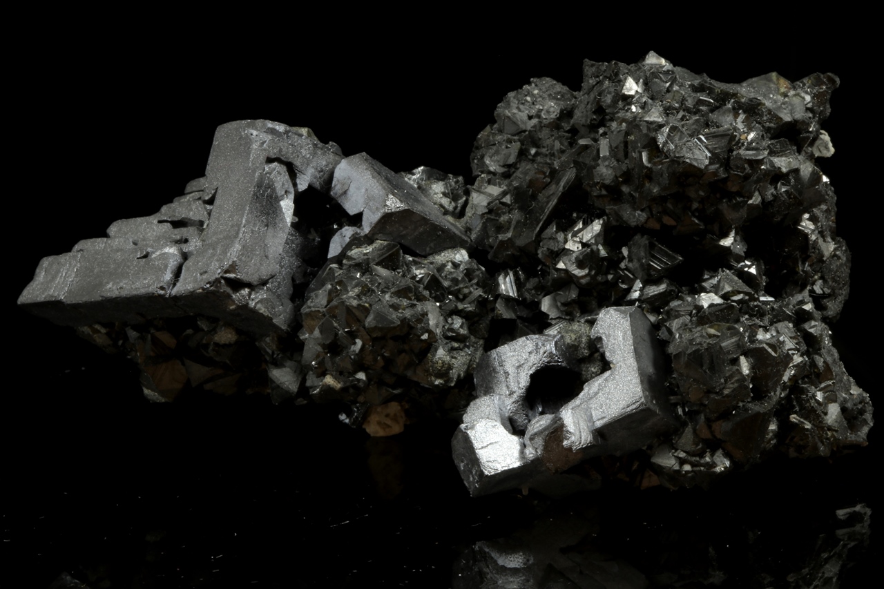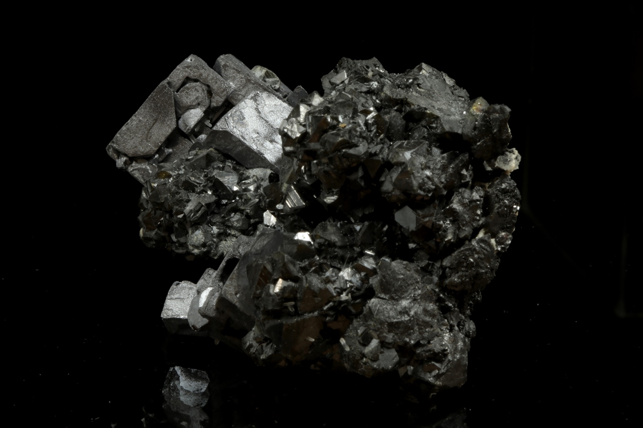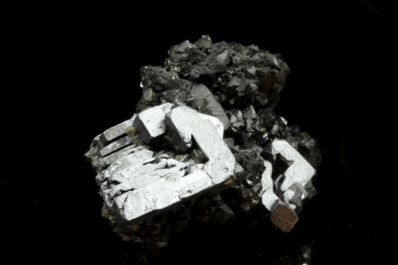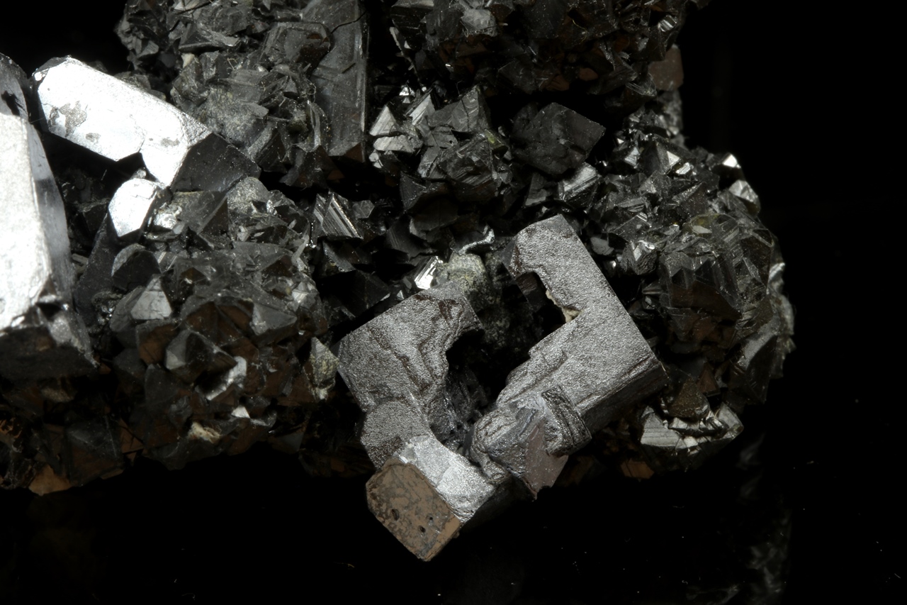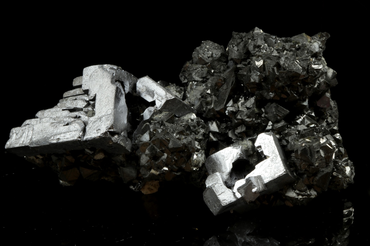 Beautifully developed gray, highly lustrous skeletal crystals of galena with tetrahedra of sphalerite from Bulgaria.