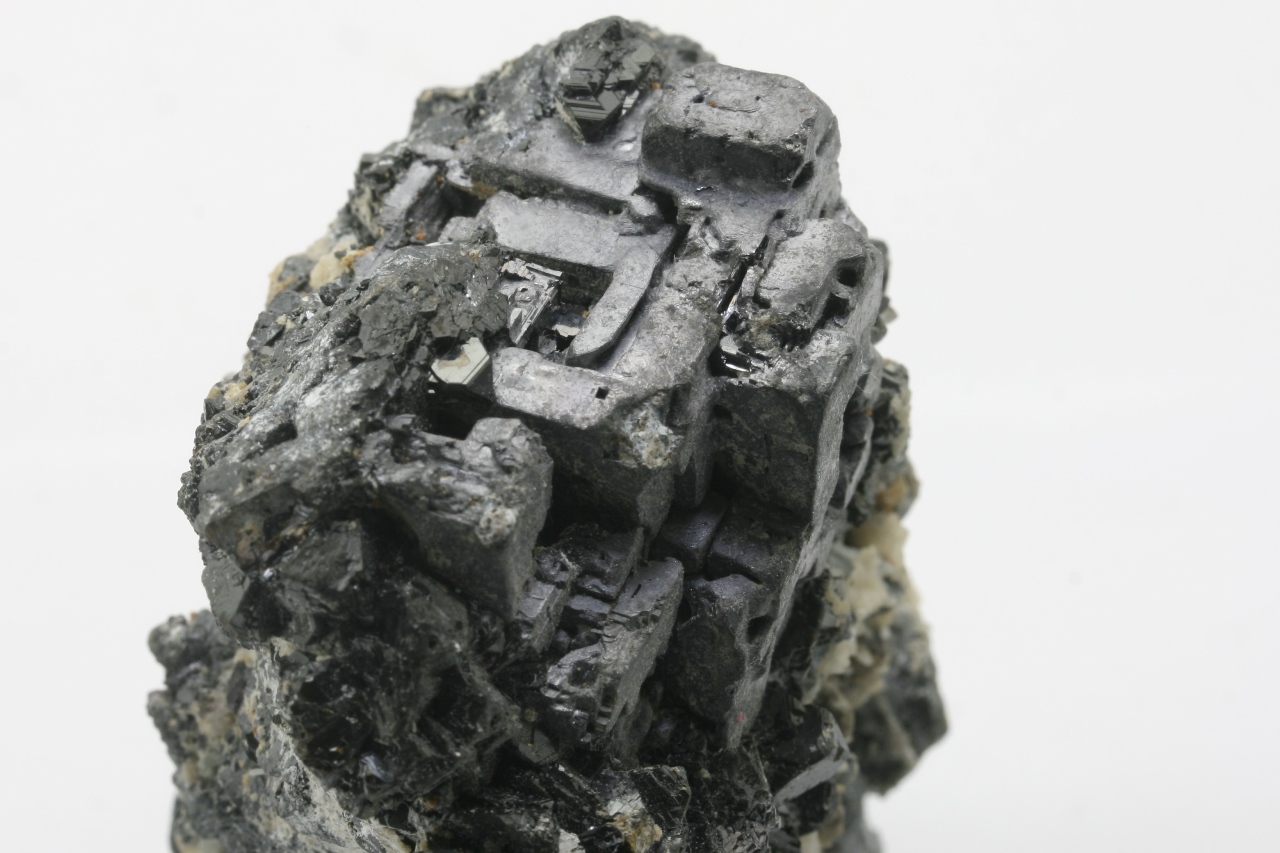 Unusual skeletal growth of a 33 mm galenite crystal with shiny crystals of sphalerite.