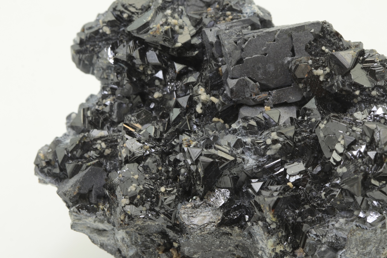 The galena in this specimen forms steel-gray, metallic-luster cubic crystals that reach a size of up to 1.7 cm. These crystals occur in this specimen together with diamond-luster, metallic crystals of sphalerite. Due to the high luster of the sphalerite, the specimen is very attractive and impressive. The specimen comes from the Madan locality in Bulgaria and was collected in 2011.