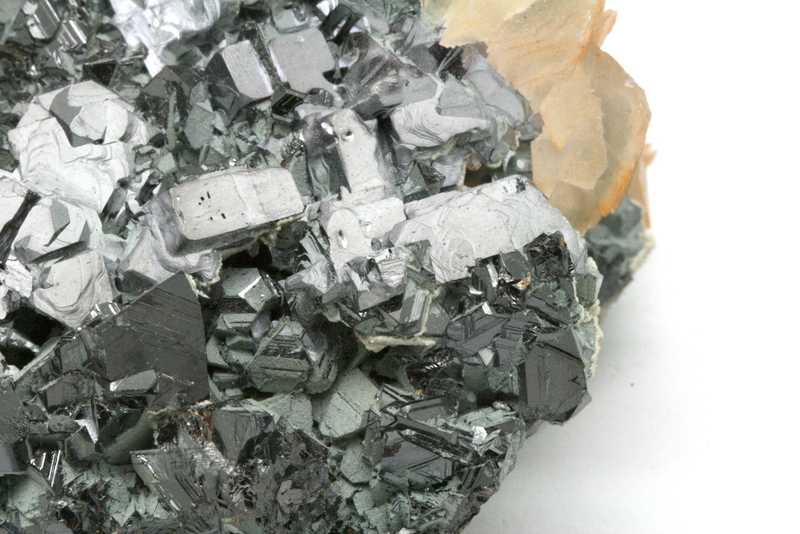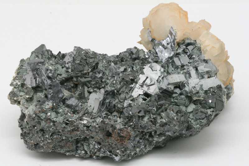 A beautiful specimen of skeletal galena overgrown with calcite and sphalerite from the Madan deposit in Bulgaria. A high-quality specimen of galena crystals up to 28 mm in size, overgrown with sphalerite and calcite crystals.