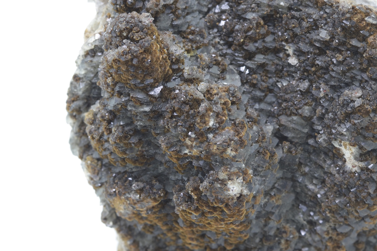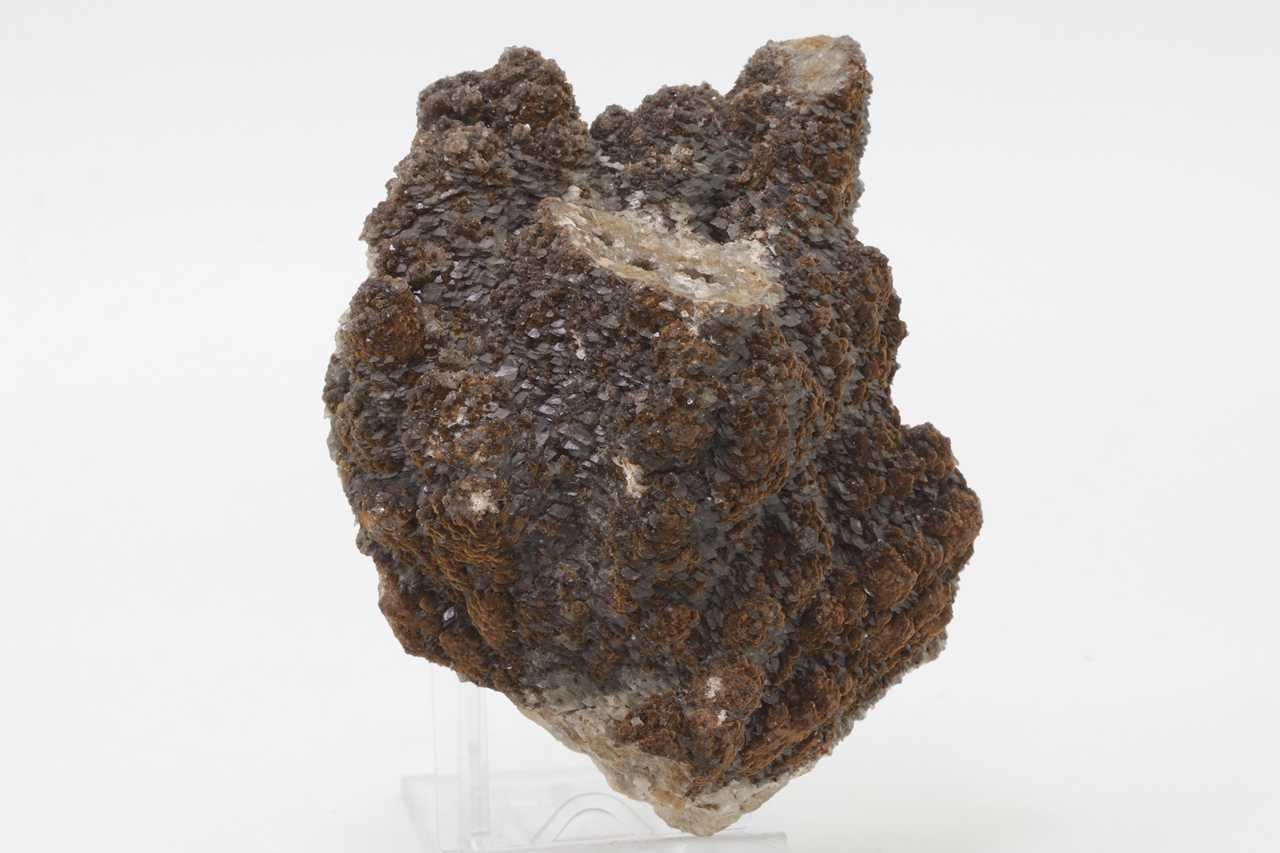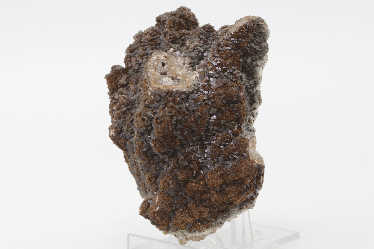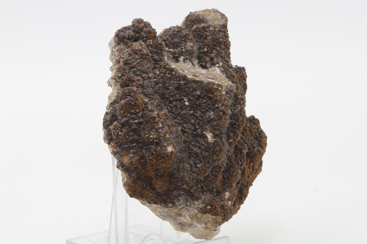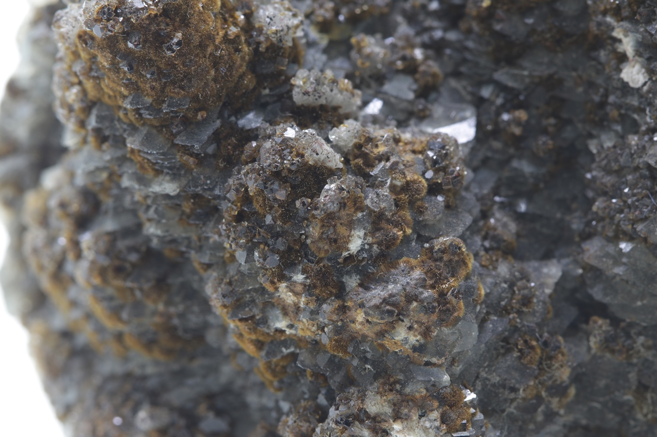 Goethite aggregates with a characteristic velvety sheen grown on cockade calcite.