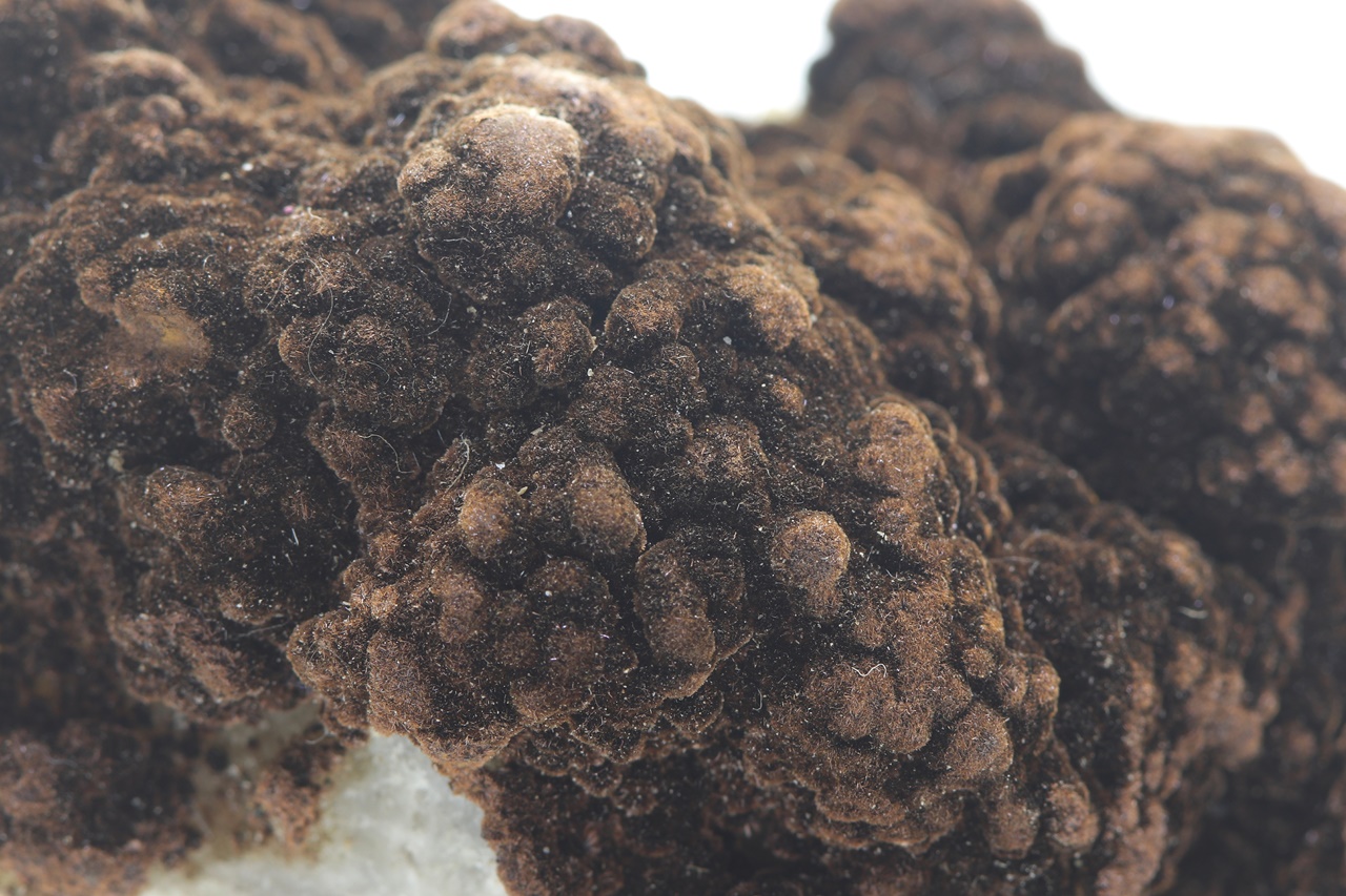 Druse of calcite overgrown with small needles of Goethite, which are called “velvet” for their characteristic luster.