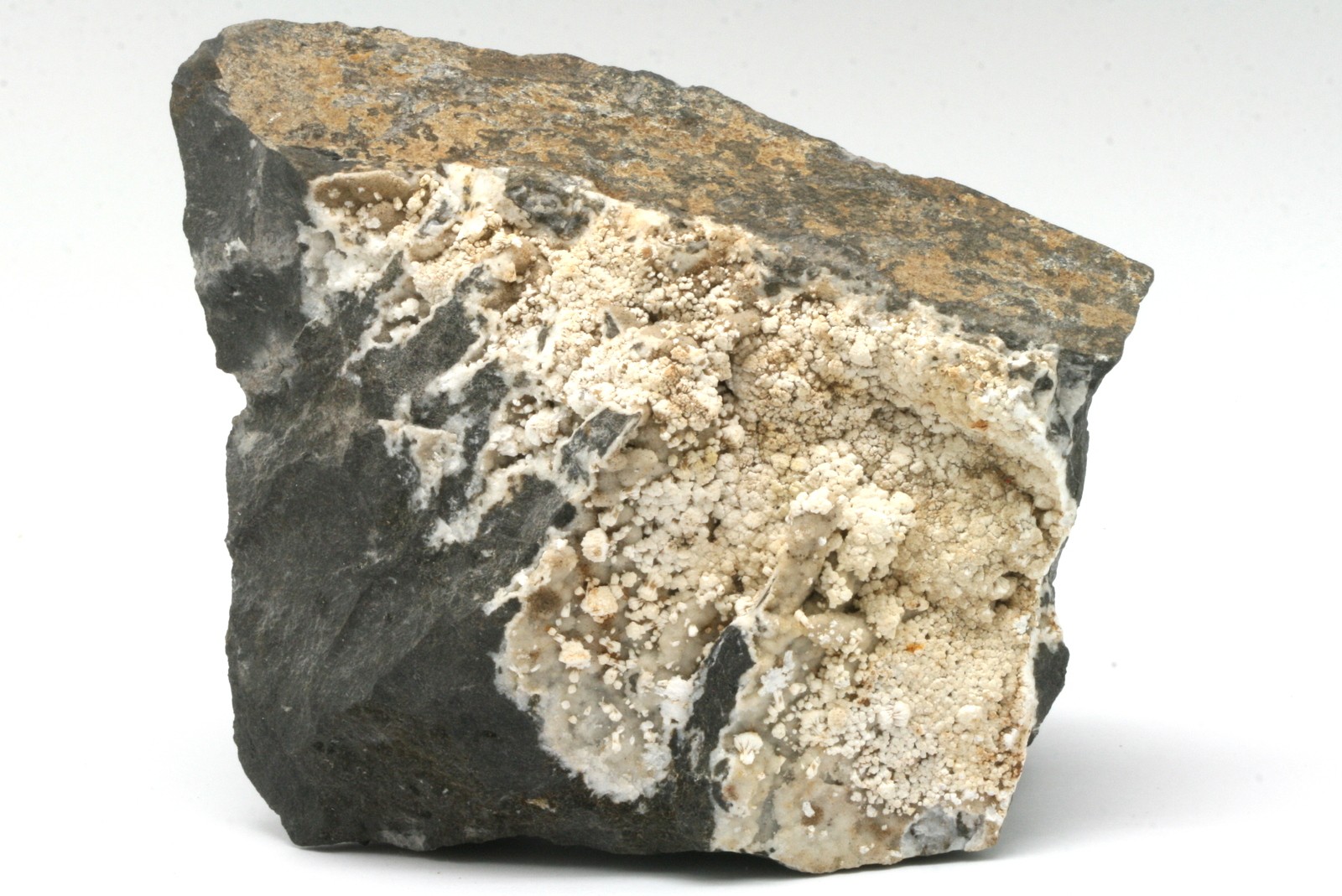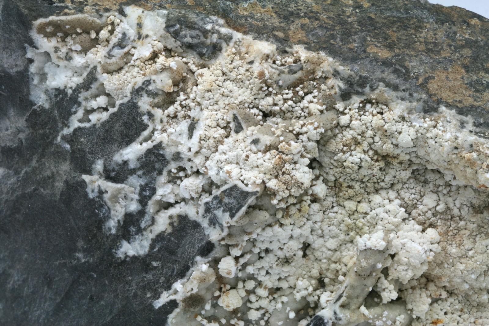 White zeolite crystals. It was determined by X-ray that the crystals are composed of a mixture of gonnardite, thomsonite, and phillipsite .
