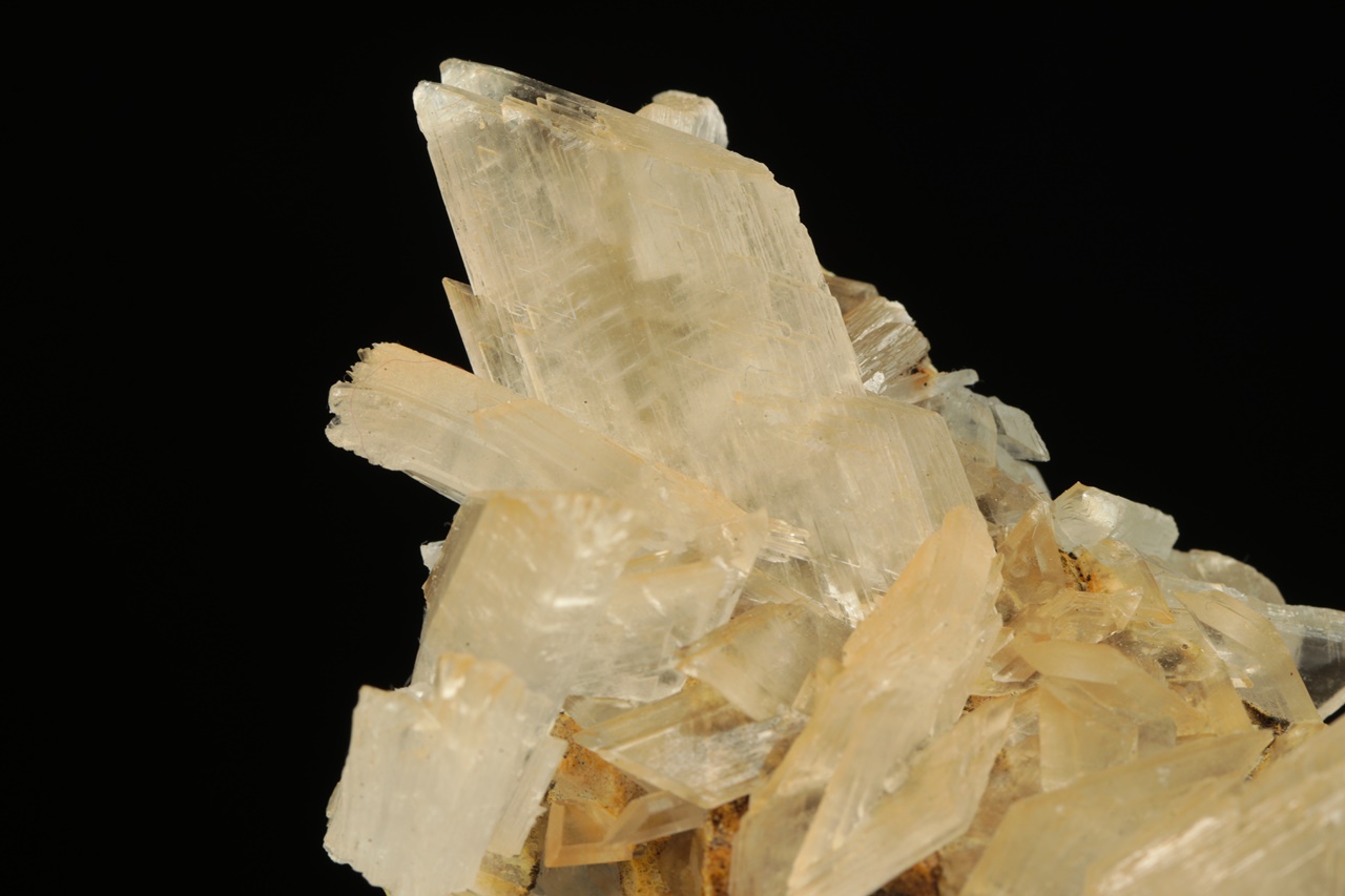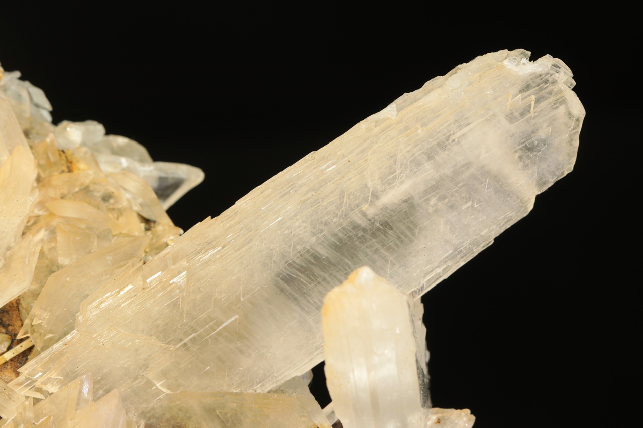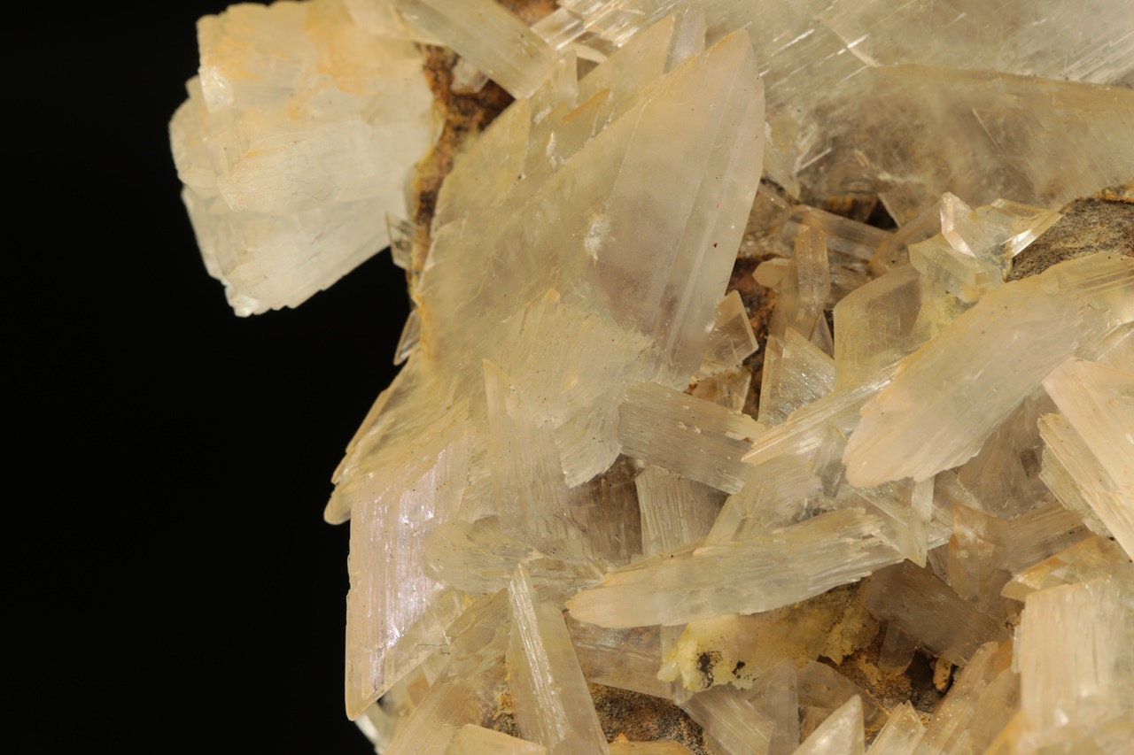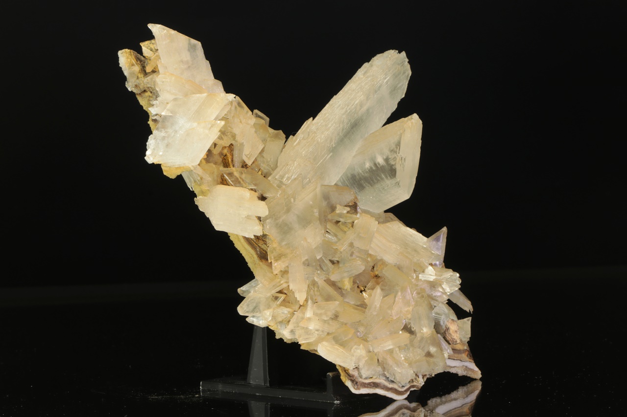An aesthetic display of transparent, vitreous gypsum crystals from a well-known Romanian locality. The size of the largest crystals is 8.5 and 5.5 cm.